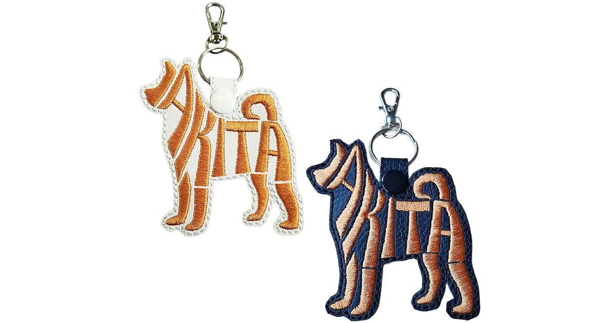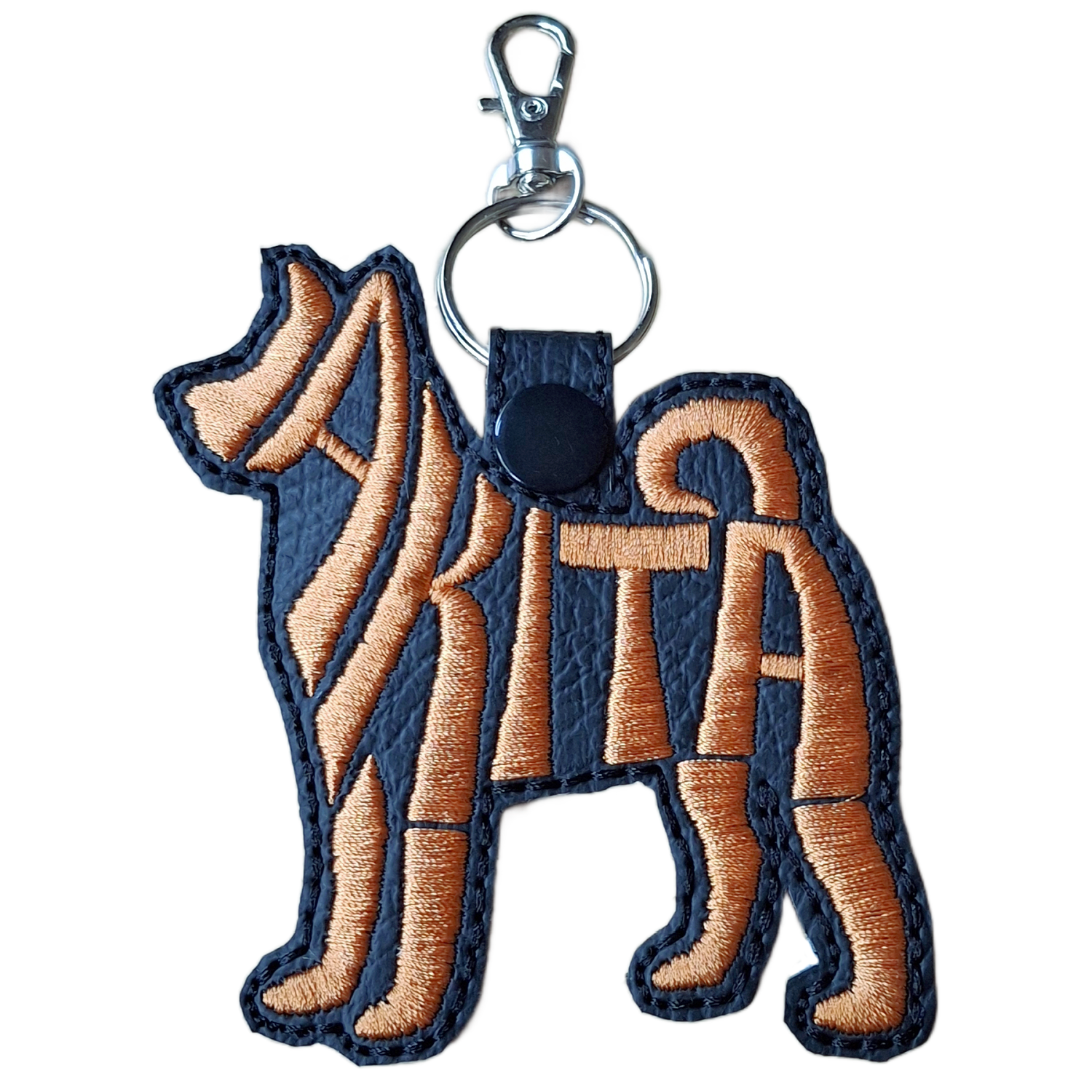 The design features the words ‘Akita’ carefully stitched to form the shape of the dog itself, with each letter thoughtfully placed to reflect the breed’s proud stance, strong frame and unmistakable outline. The word art style creates a bold yet balanced form, honouring the Akita’s beauty, resilience and loyal nature.