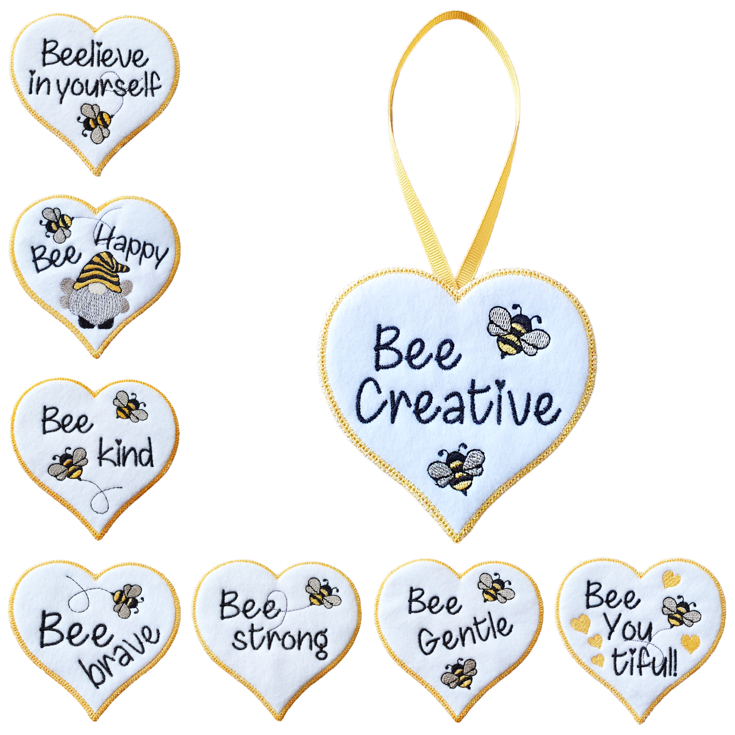 Other bee hearts are available with its own uplifting message, designed to bring comfort, positivity, and a touch of handmade joy to any day. If you would like a garland made with a selection of these hearts, please feel free to send a message to discuss the details.