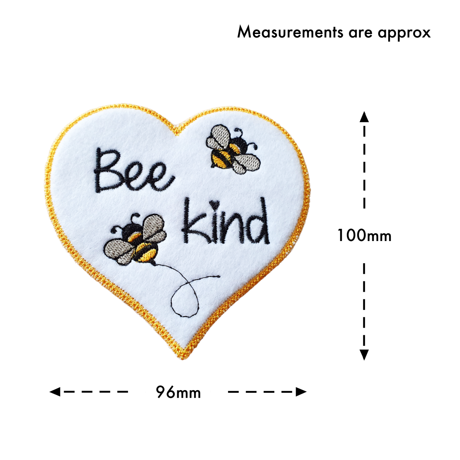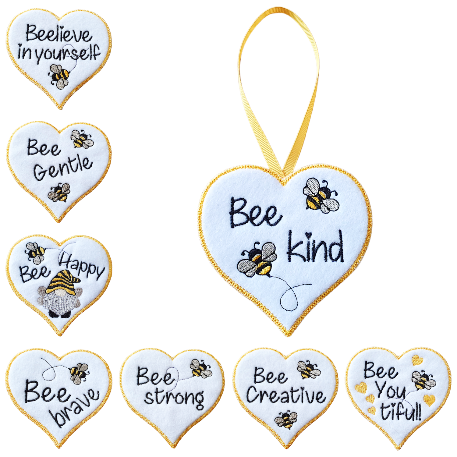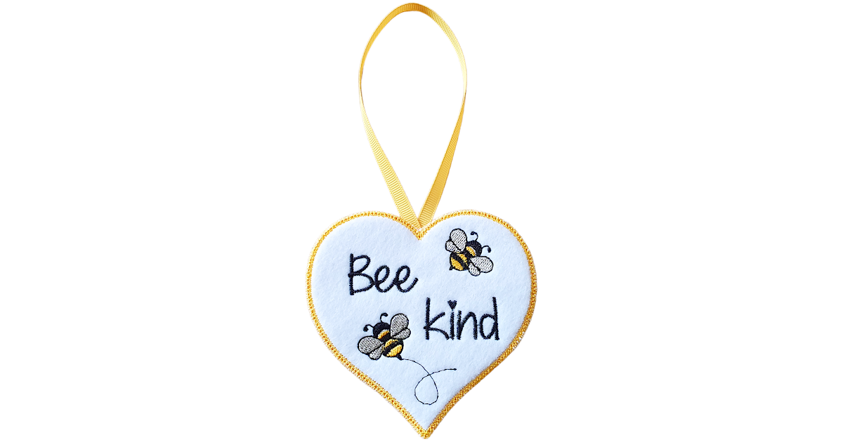 Featuring the uplifting words ‘Bee Kind’ alongside sweet embroidered bees, this heart symbolises empathy, thoughtfulness, and the quiet power of kindness.