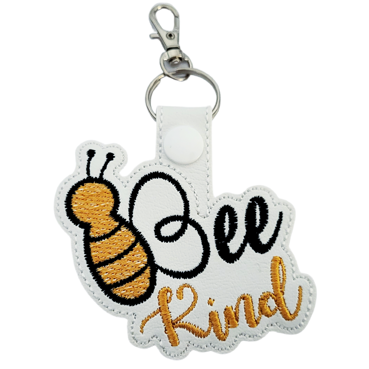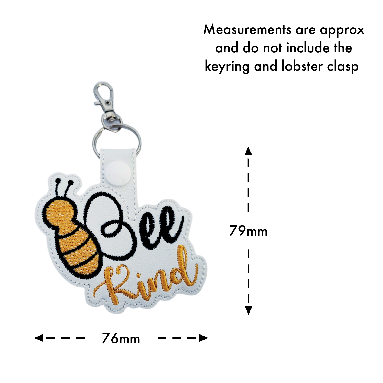 Crafted from soft, textured faux leather and machine embroidered with high-quality threads, this keyring combines a handmade feel with lasting durability. The bee-inspired word art design adds warmth, charm and character, while the stitched lettering creates a tactile, carefully finished piece that feels personal and uplifting.