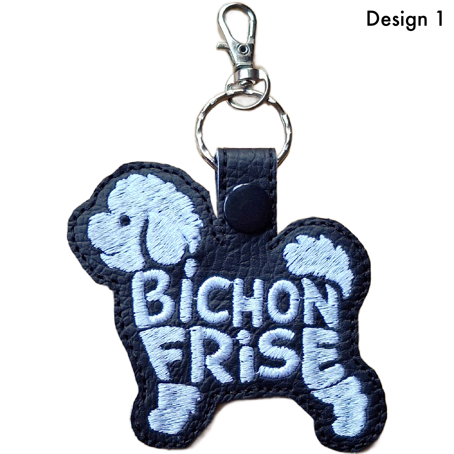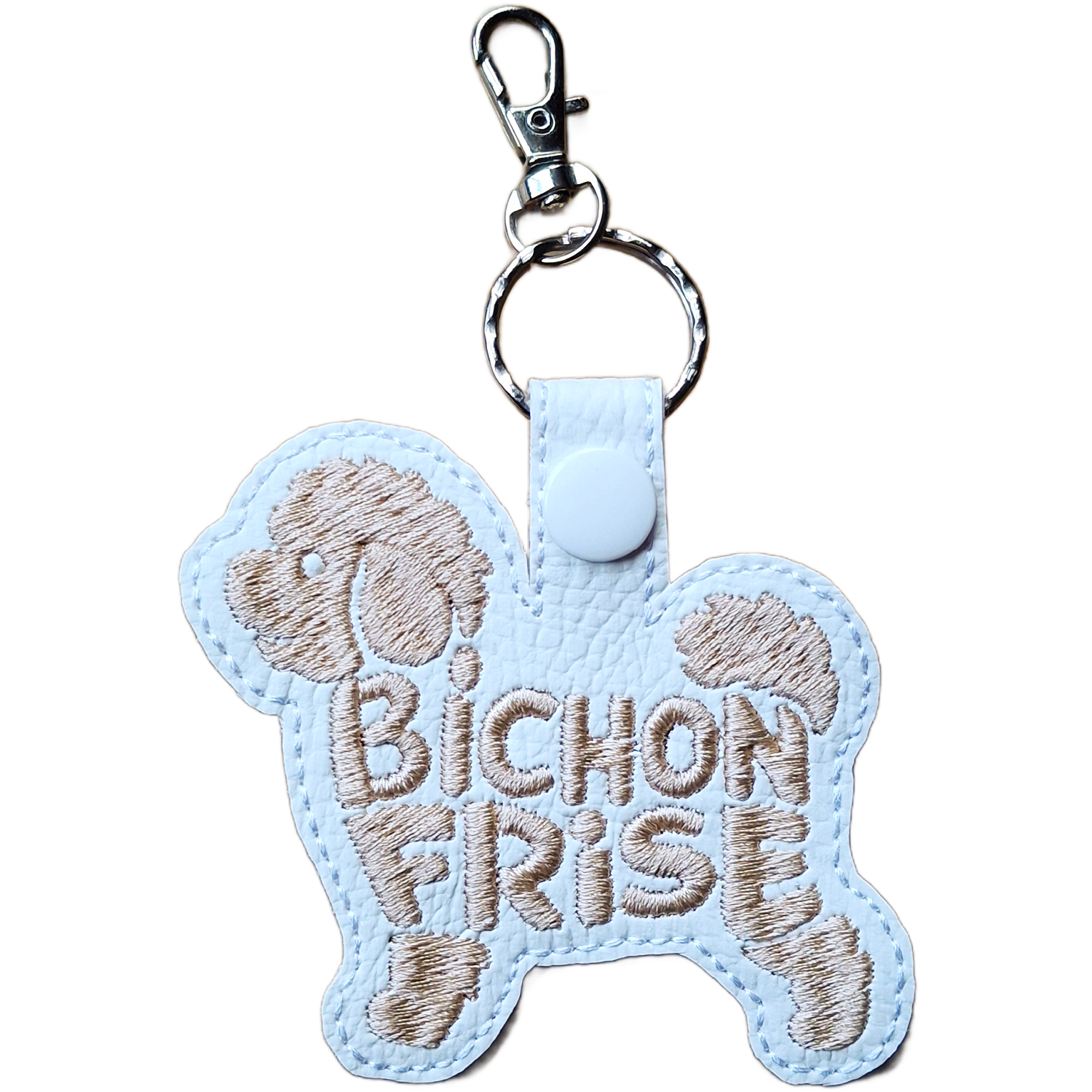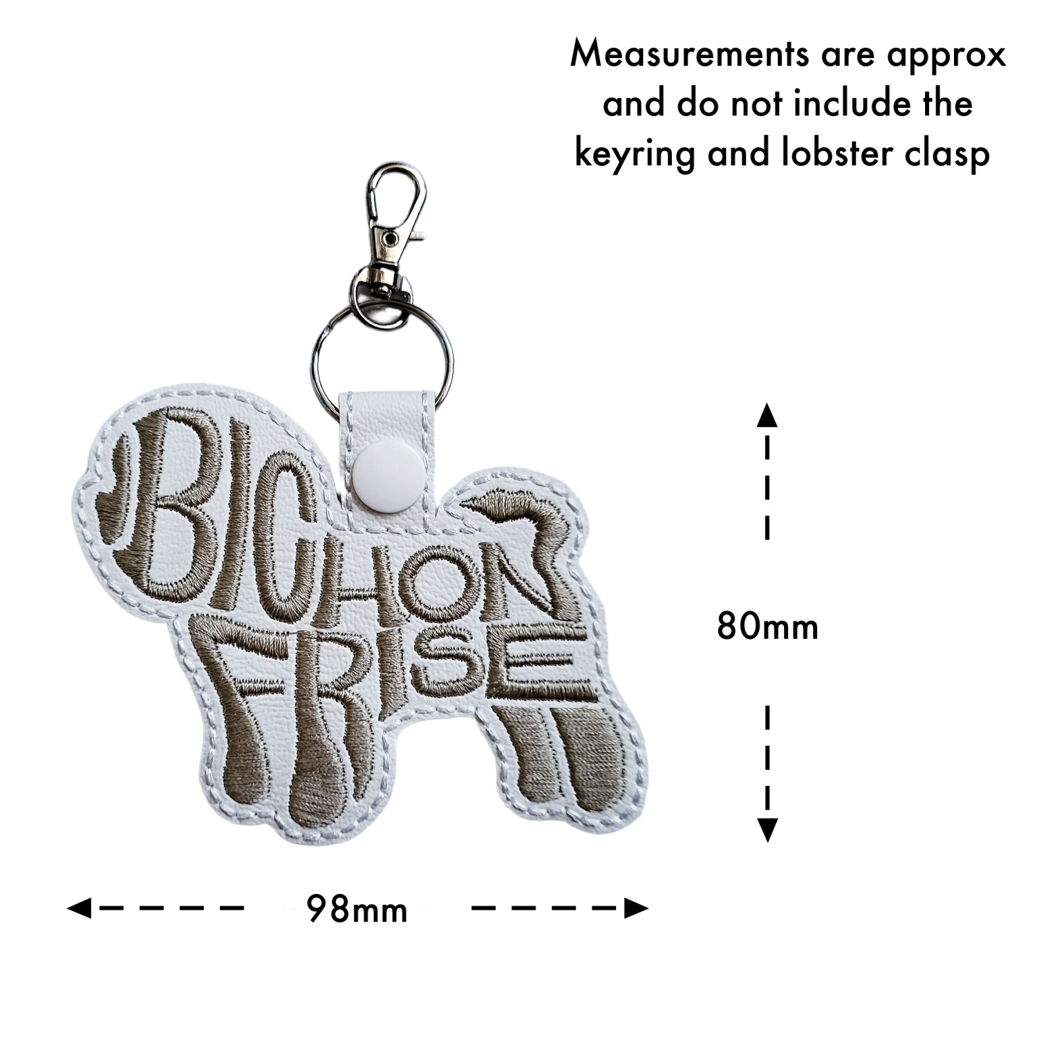 Made from soft faux leather and neatly machine embroidered with high-quality threads, each keyring captures the sweet shape and personality of the Bichon Frise. The word-art detailing adds gentle depth and texture, giving it a cosy, tactile finish without feeling bold or busy.