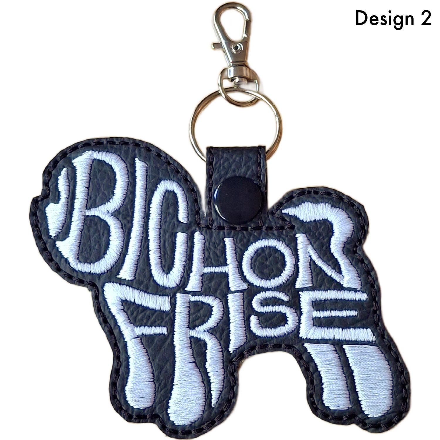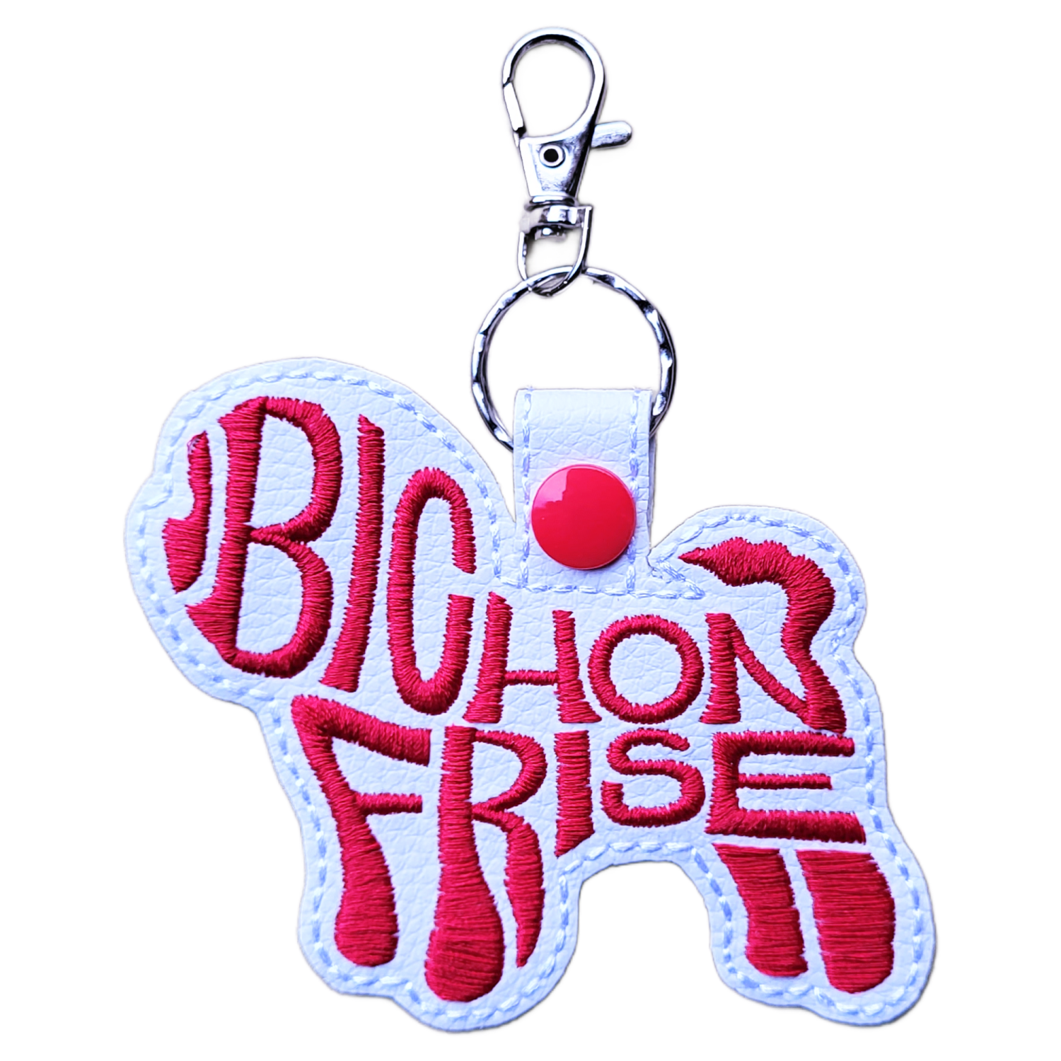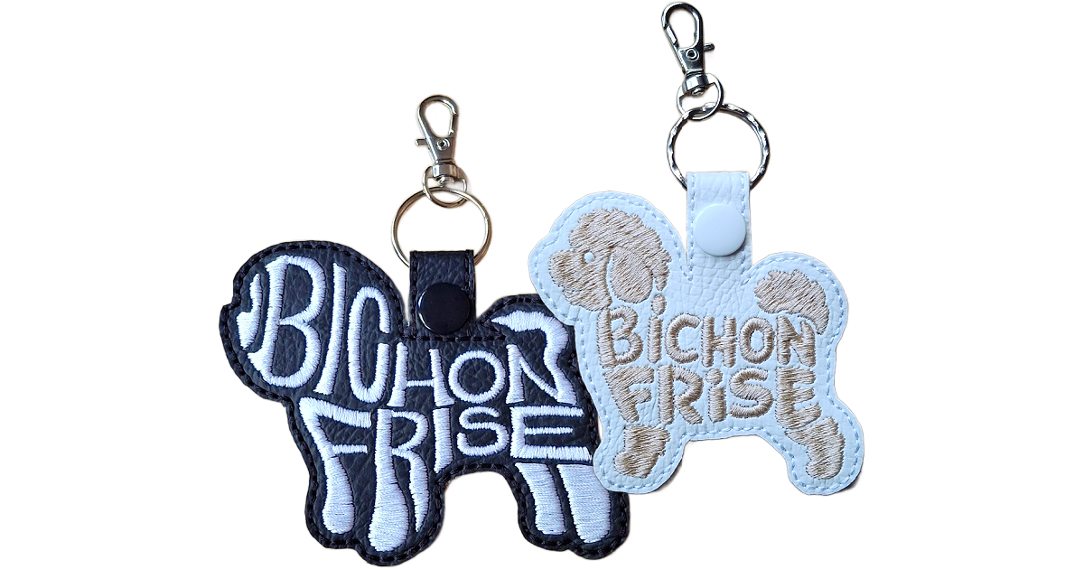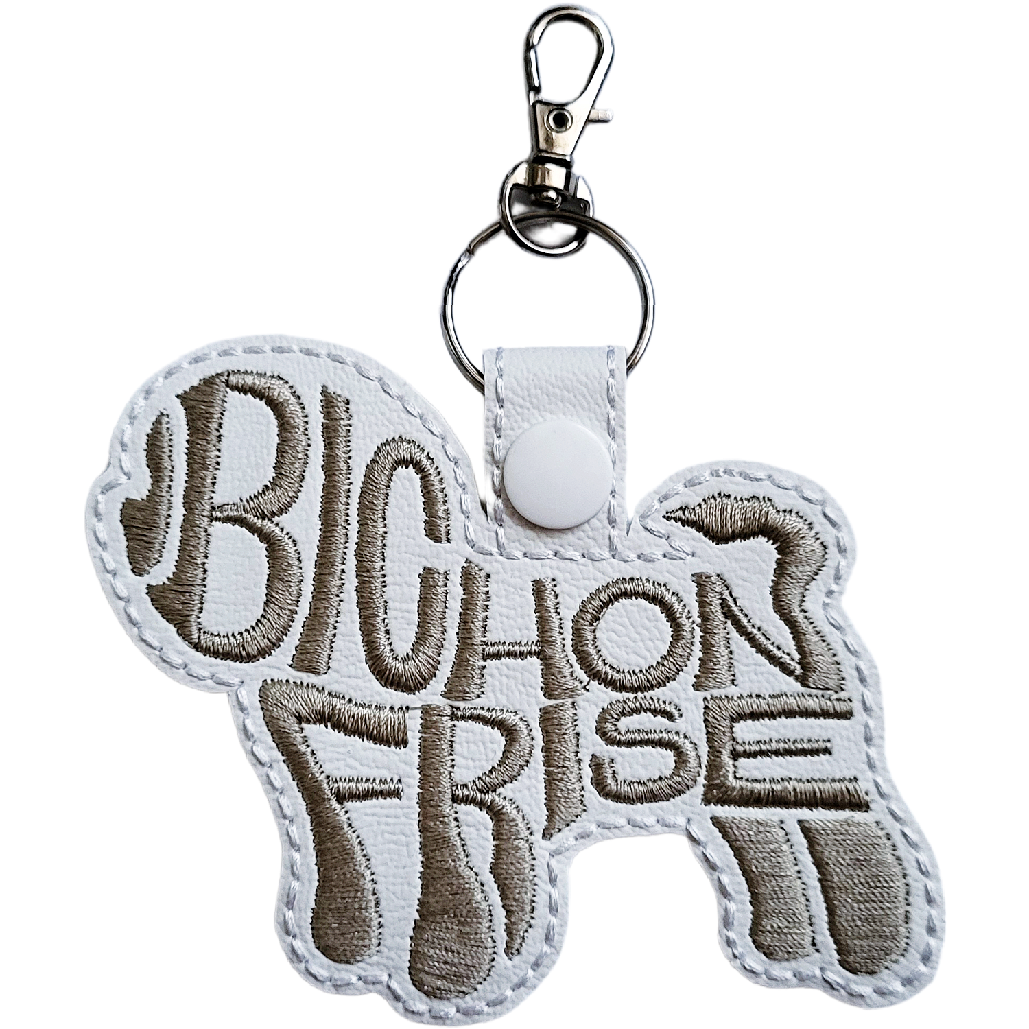 Made from soft faux leather and neatly machine embroidered with high-quality threads, each keyring captures the sweet shape and personality of the Bichon Frise. The word-art detailing adds gentle depth and texture, giving it a cosy, tactile finish without feeling bold or busy.