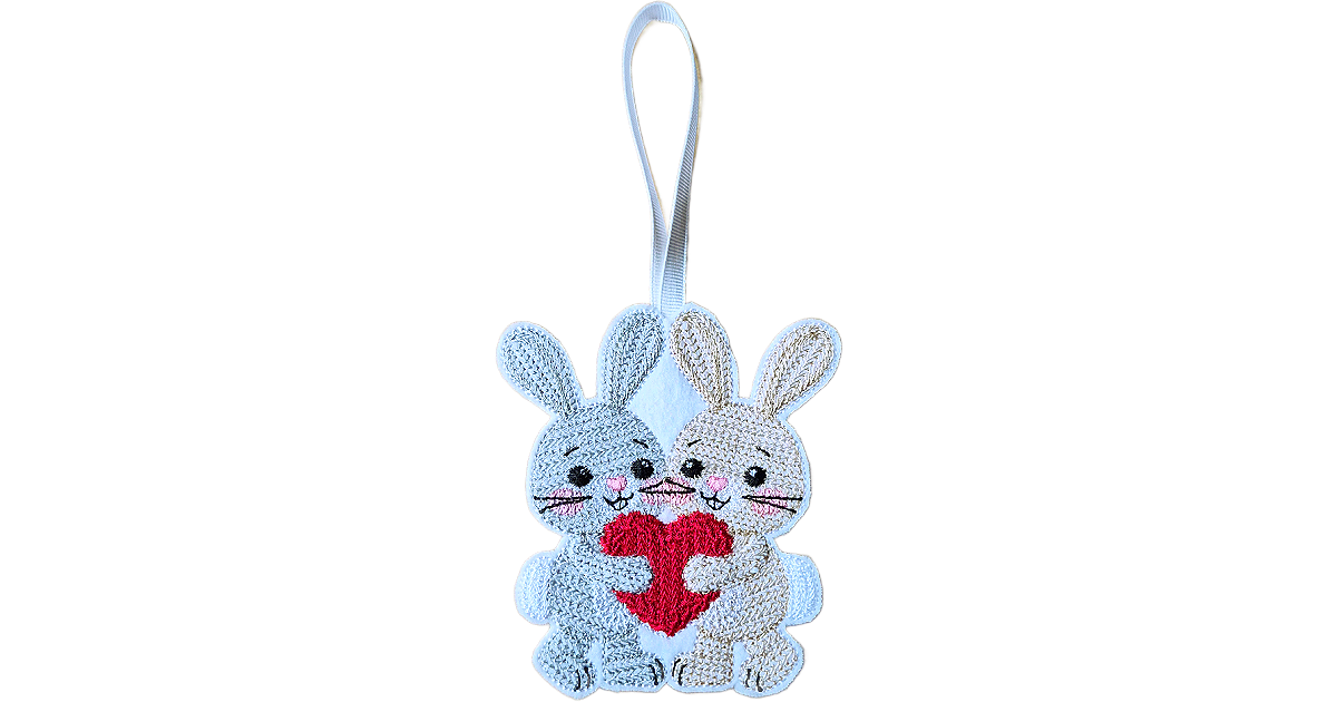 The pair of bunnies, nestled together around a shared heart, create a calm and comforting decoration filled with warmth. It is a simple yet meaningful design that speaks of togetherness, care and heartfelt bonds.