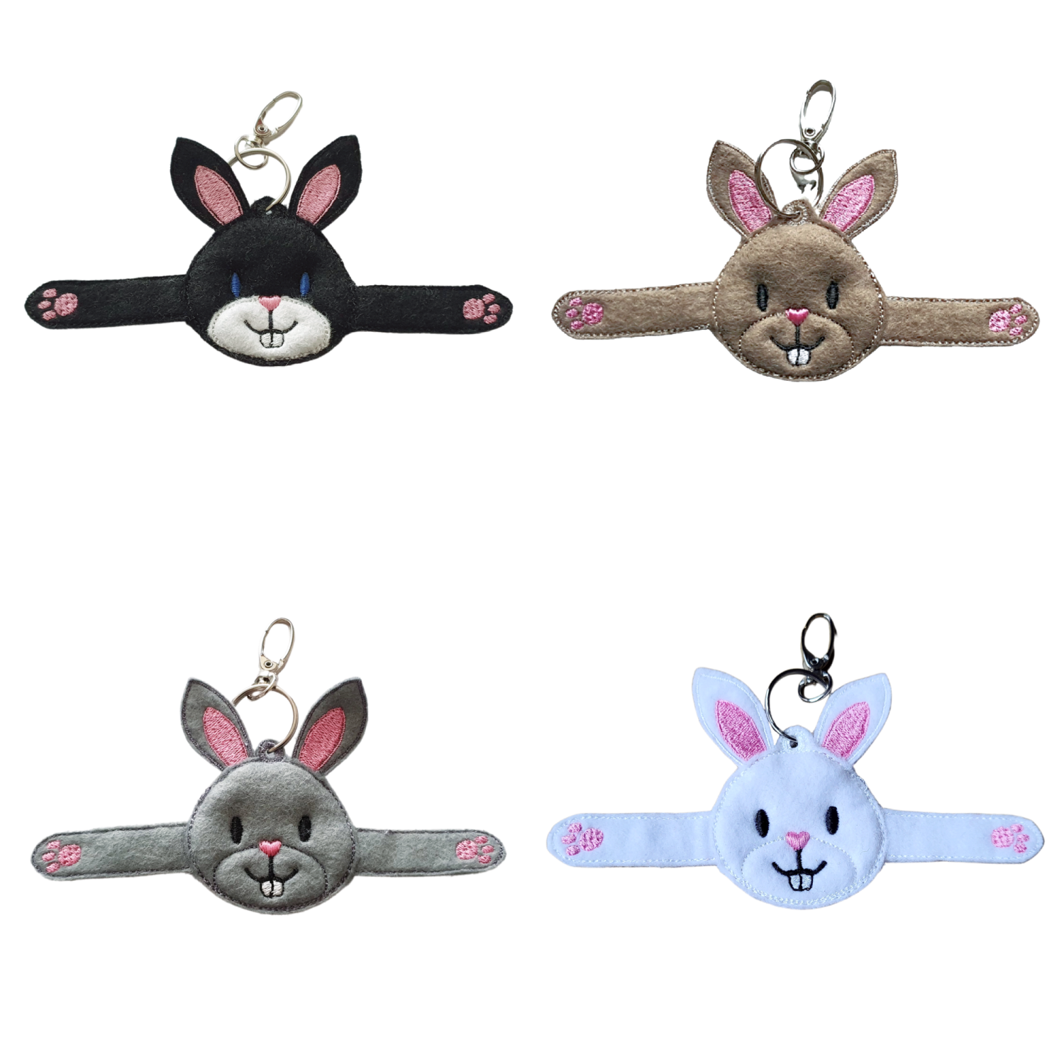 Each bunny is lovingly made from soft felt and machine embroidered using high-quality threads, giving every piece a beautifully neat finish and a touch of handmade character. With its outstretched arms and friendly little face, it is a pocket-sized hug ready to travel wherever life takes you.