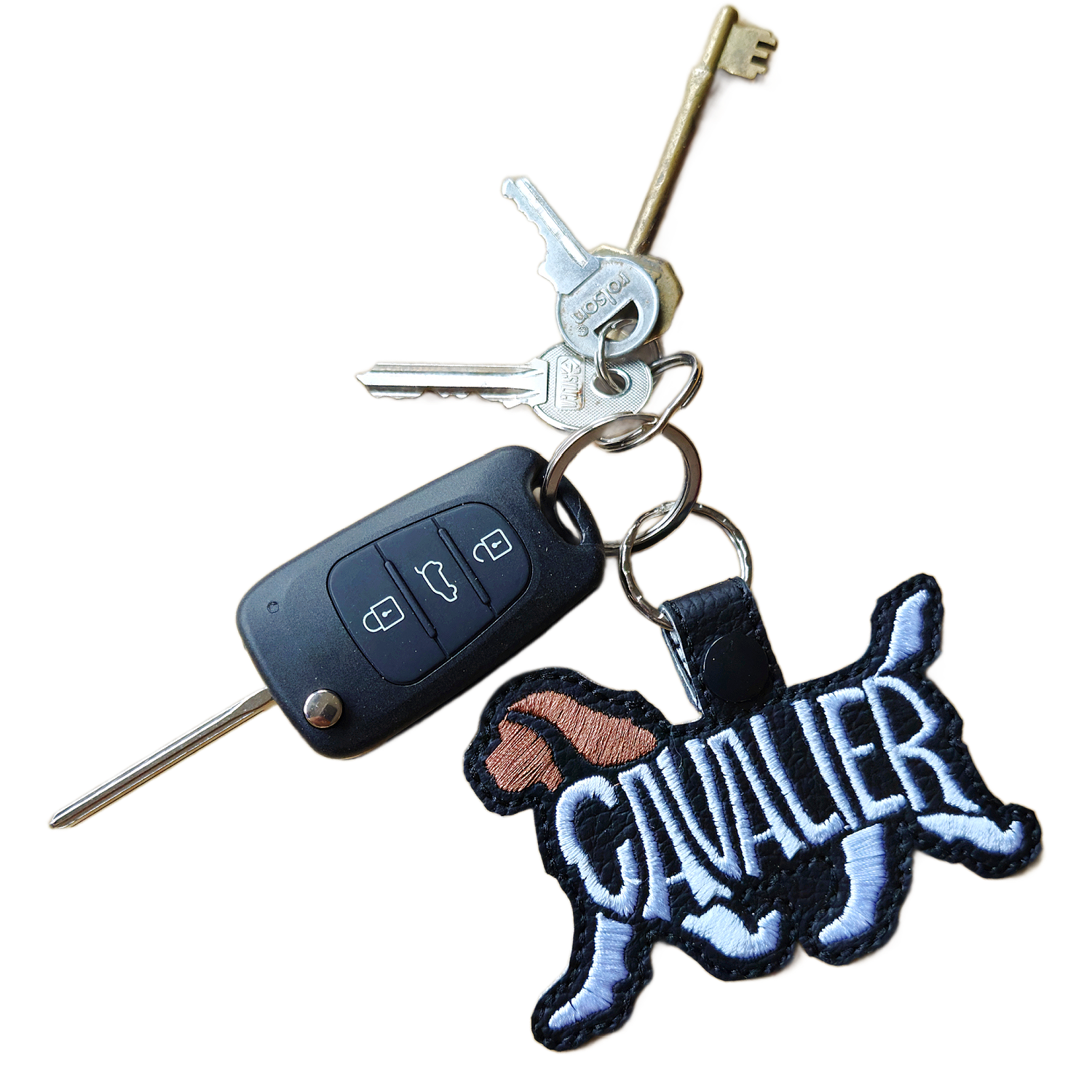 Crafted from faux leather and machine embroidered with high quality threads, this keyring is lightweight yet durable, with raised stitched detail that adds texture, depth and warmth. The embroidery gives a tactile finish while keeping the design clean, balanced and refined.