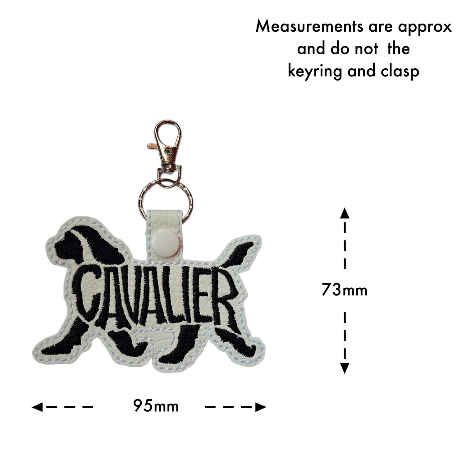 Made from soft faux leather and beautifully machine-embroidered with high-quality threads, each keyring captures the graceful silhouette of the Cavalier. The stitched word-art adds depth and texture, creating a tactile little keepsake that stands out without ever feeling bold or fussy.