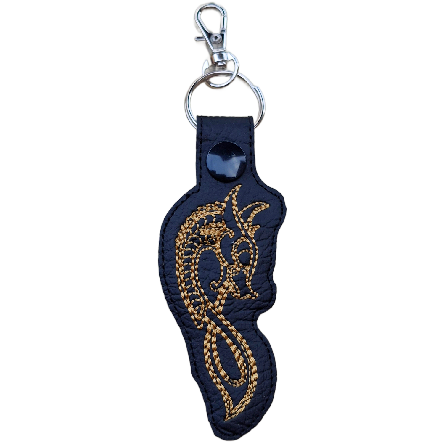 Each keyring is crafted from high-quality faux leather and finished with crisp machine embroidery using premium threads for clarity and durability. The detailed dragon design is carefully stitched to highlight its flowing lines and strong presence, while the structured yet flexible finish makes it ideal for everyday use.