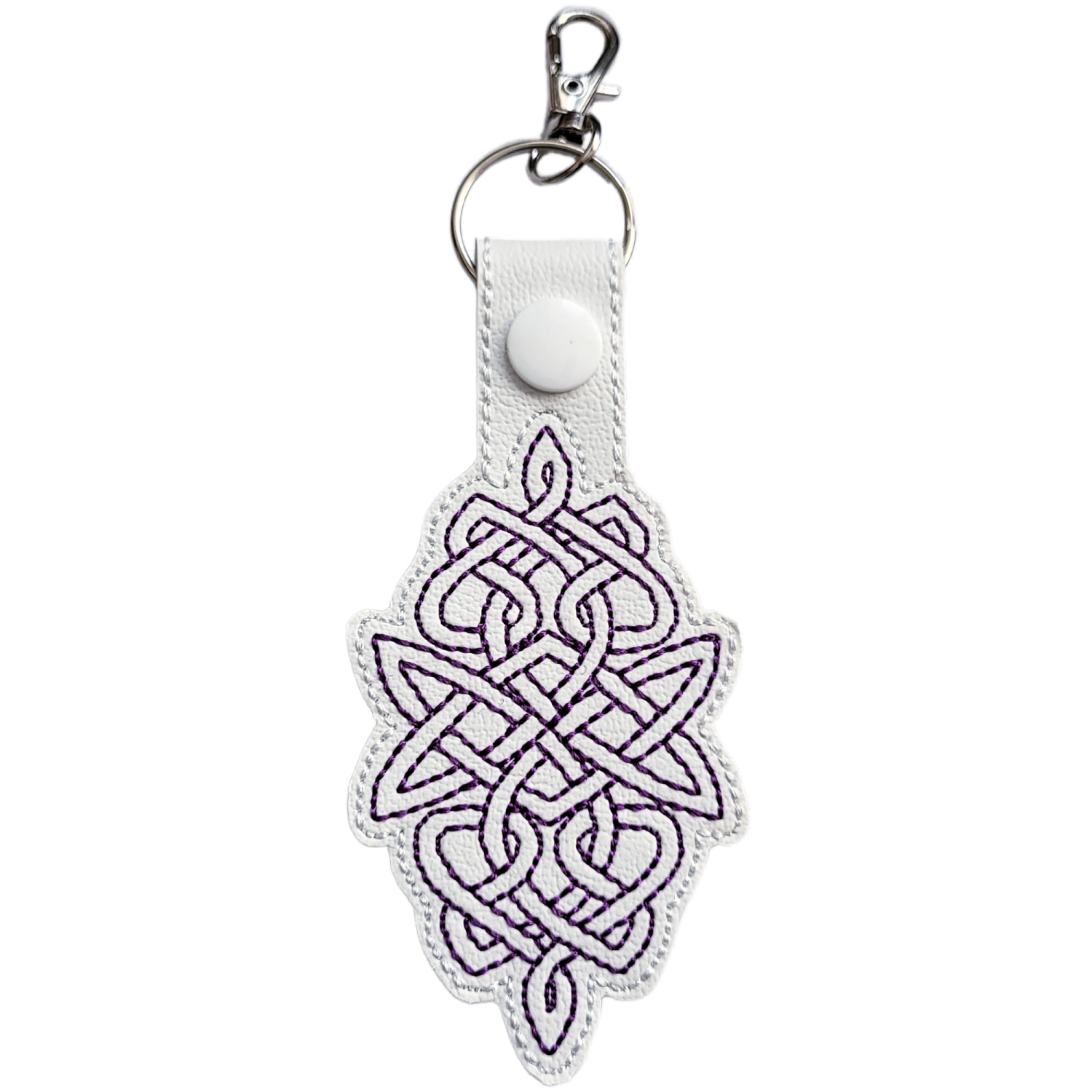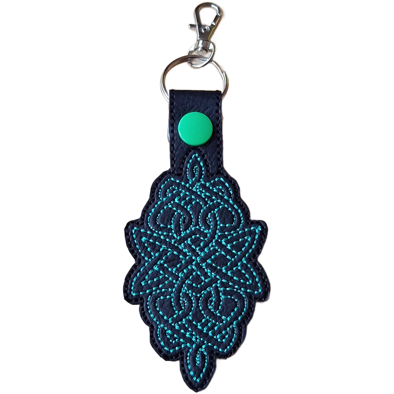 ✨ Made With Care Each keyring is crafted from soft yet durable faux leather, chosen for its smooth feel and long-lasting quality. The Celtic knot is machine embroidered with premium threads, producing crisp, clean lines and a subtle sheen that highlights the depth of the pattern. Every stitch is placed with care to ensure a strong, neat finish that stands up beautifully to daily use.