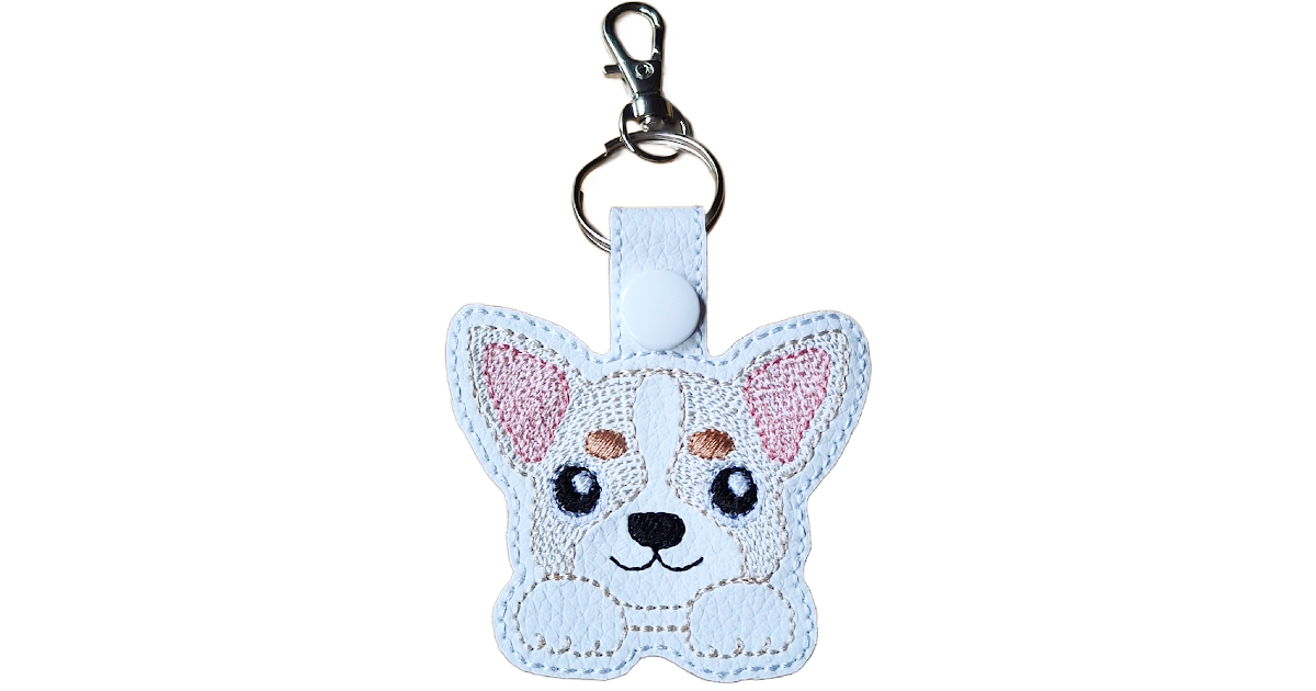 The Kawaii Dog Keyring features a whimsical design that captures the essence of Chihuahuas perfectly. Imagine a cute little Chihuahua adorned with iconic large, squishy eyes, a tiny nose, and those distinctive pointy ears. This keyring captures the playfulness and endearing nature of these beloved dogs, making it a charming addition to any collection. Crafted from high-quality faux leather and using sturdy threads for its embroidery, it promises durability, so you can enjoy it for years without worry.