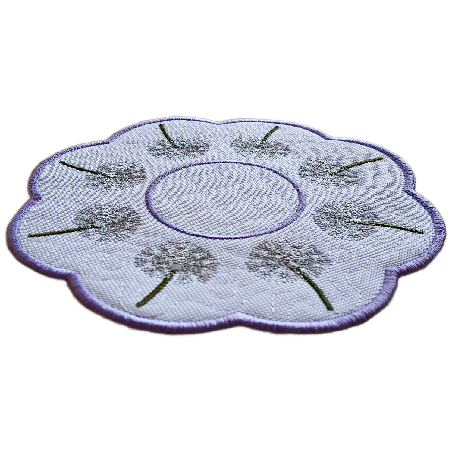 Each mat features beautifully embroidered dandelion clocks. This artistry evokes a profound sense of calm and nostalgia, transforming any surface into a tranquil focal point. A subtle stippling pattern further refines the texture, making this mat not merely functional but a sophisticated accent piece.