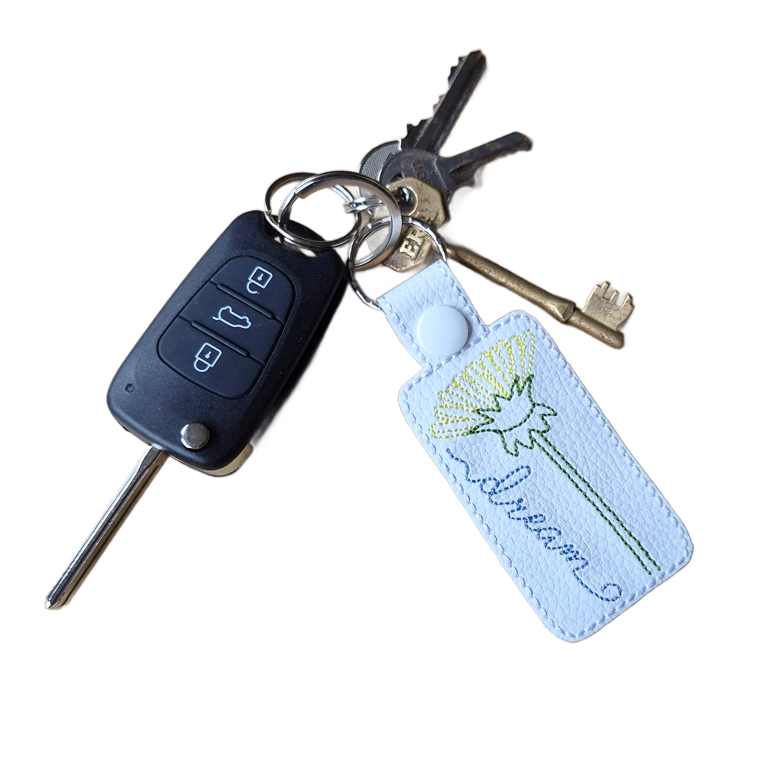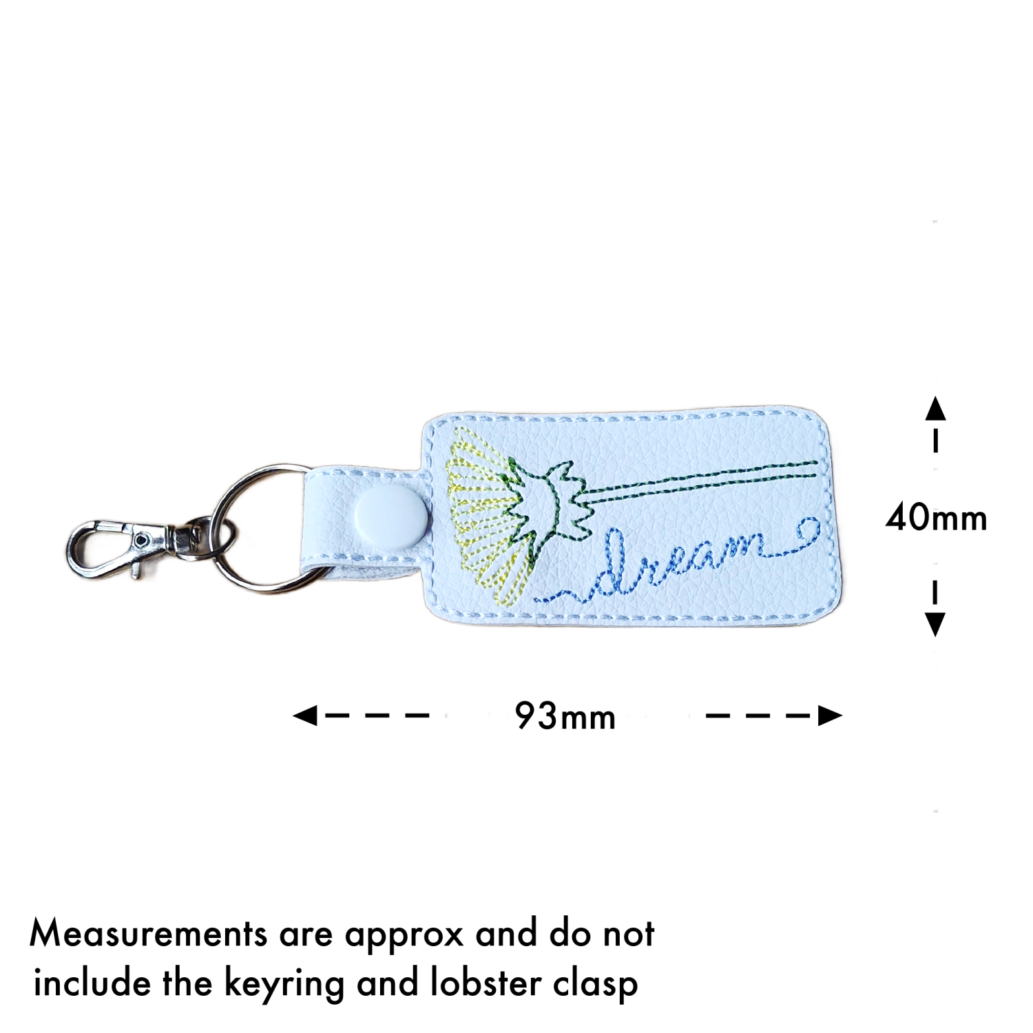 Crafted from soft faux leather and machine embroidered with high quality threads, this keyring is lightweight, durable, and gently textured. Finished with neat stitching and a secure clasp, it is made to be enjoyed every day.