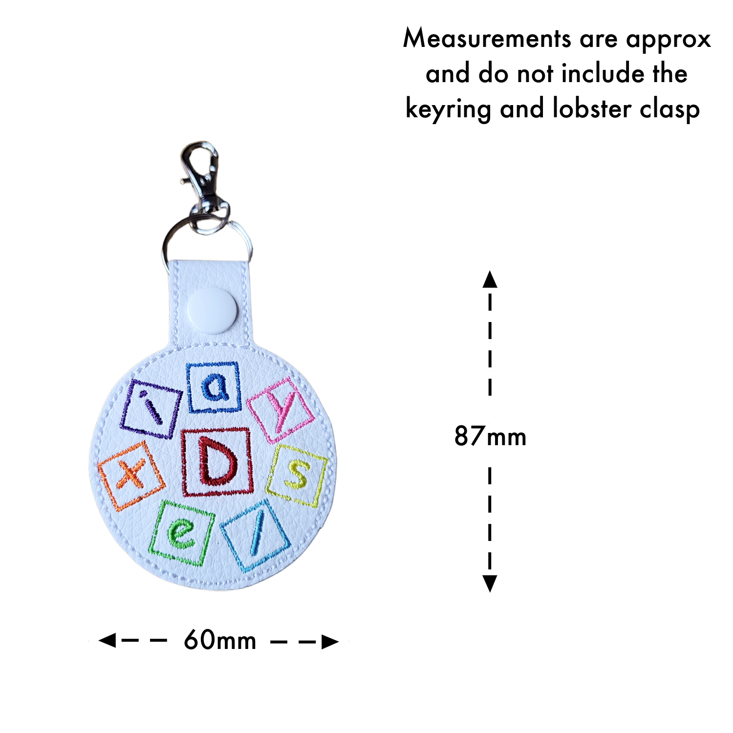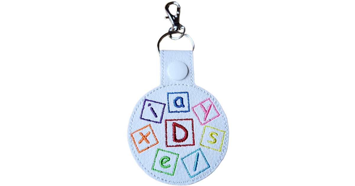 Celebrate different ways of thinking with this Thinking Differently – Dyslexia Keyring, a gentle and meaningful design created to raise awareness and show support. Featuring colourful embroidered letter blocks spelling out the word ‘dyslexia’, this thoughtful keyring represents the creativity, resilience, and unique perspectives that come from thinking differently. Simple, positive, and full of heart, it is a small reminder that different minds bring valuable strengths.