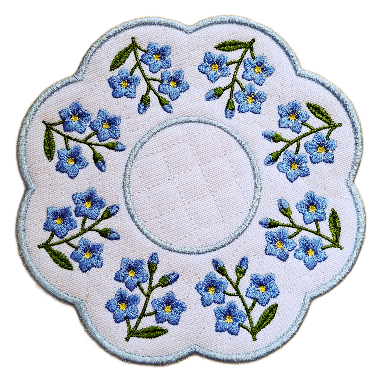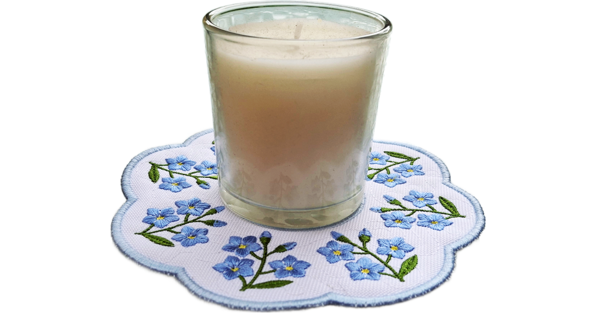 The forget-me-not motif is a timeless symbol of remembrance, connection and care. Carefully embroidered floral details create texture and depth, making this candle mat a subtle yet meaningful finishing touch that enhances your décor without overpowering it.