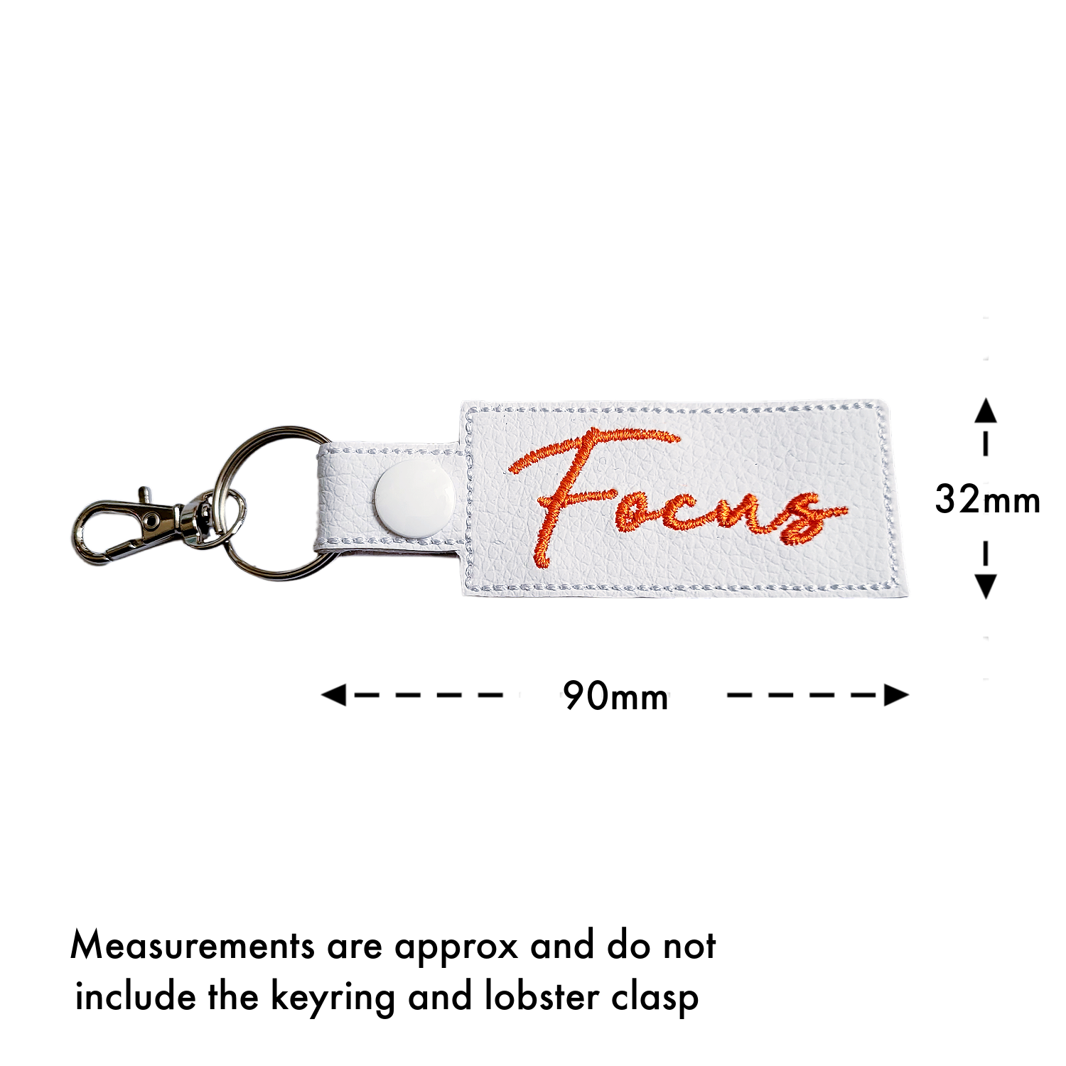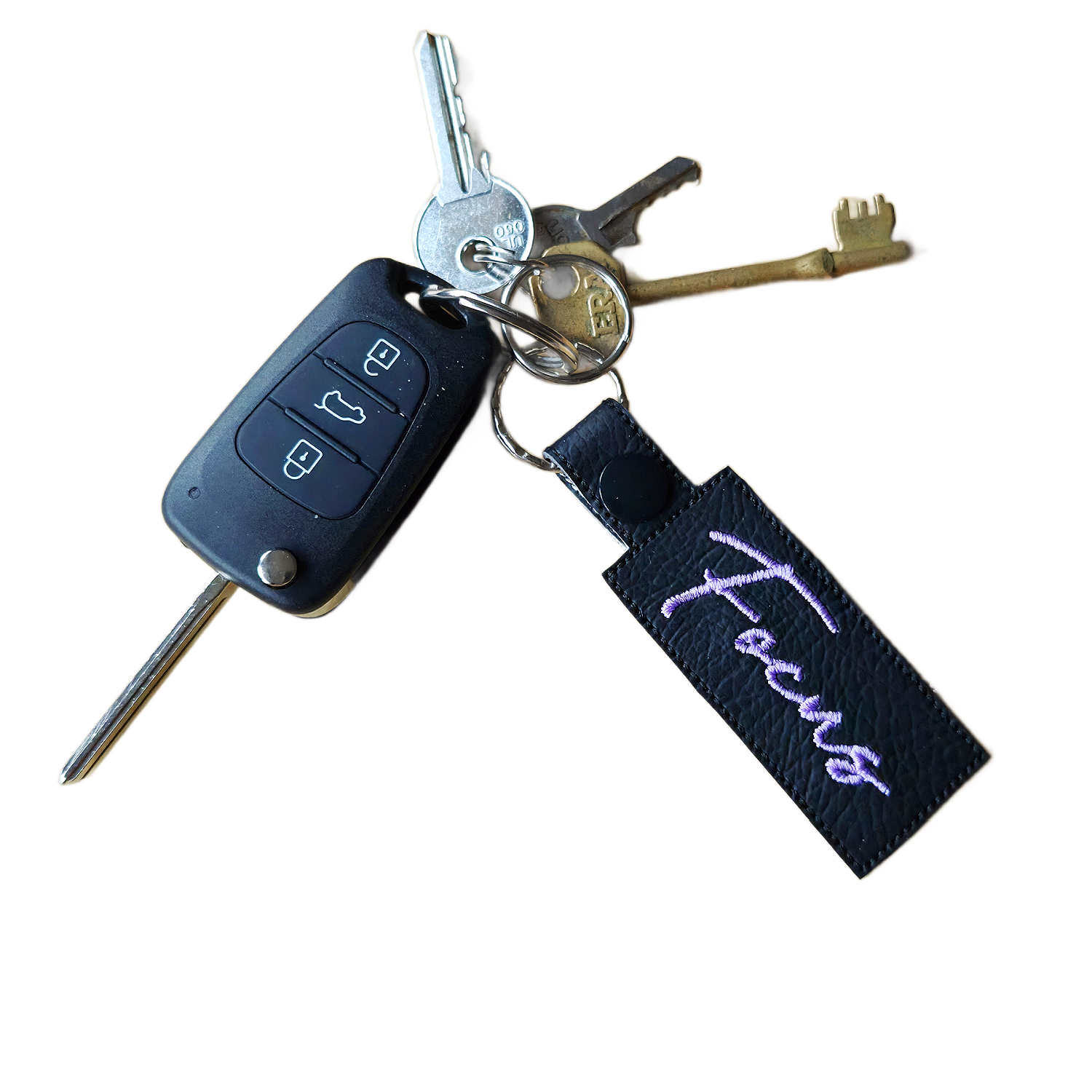 Made from faux leather and machine embroidered with high-quality threads, this keyring combines a soft, tactile feel with crisp stitched lettering. Finished with sturdy hardware, it is designed for everyday use on keys, bags, or backpacks while remaining lightweight and comfortable to carry.