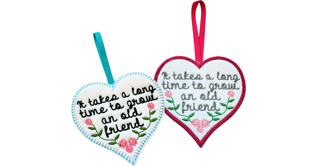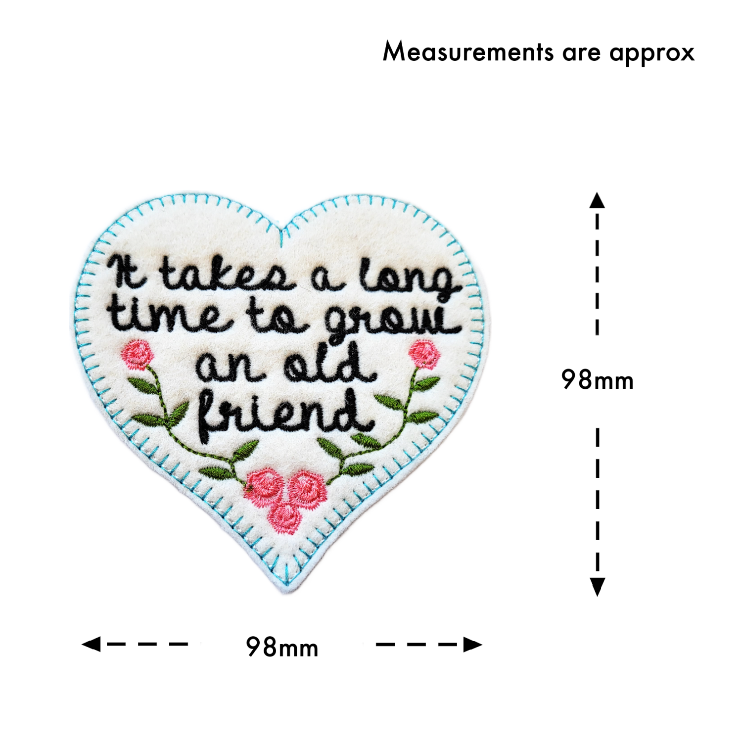 Embroidered with the thoughtful words ‘It takes a long time to grow an old friend’, this heart carries a message of trust, warmth and lasting connection. A gentle reminder that the strongest bonds are formed through time, care and shared moments.