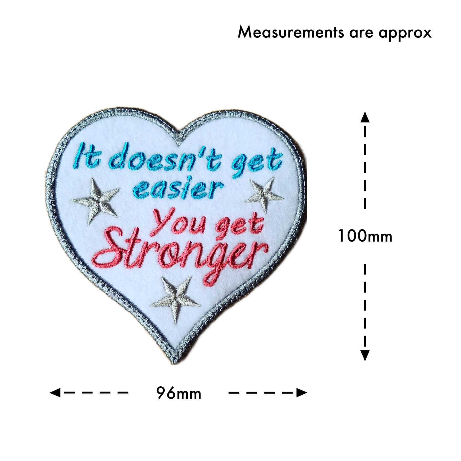 Embroidered with the empowering words ‘It doesn’t get easier, you get stronger’, this heart carries a message of honesty, hope and determination. It gently reminds the recipient that strength is not about circumstances changing, but about the courage built along the way.