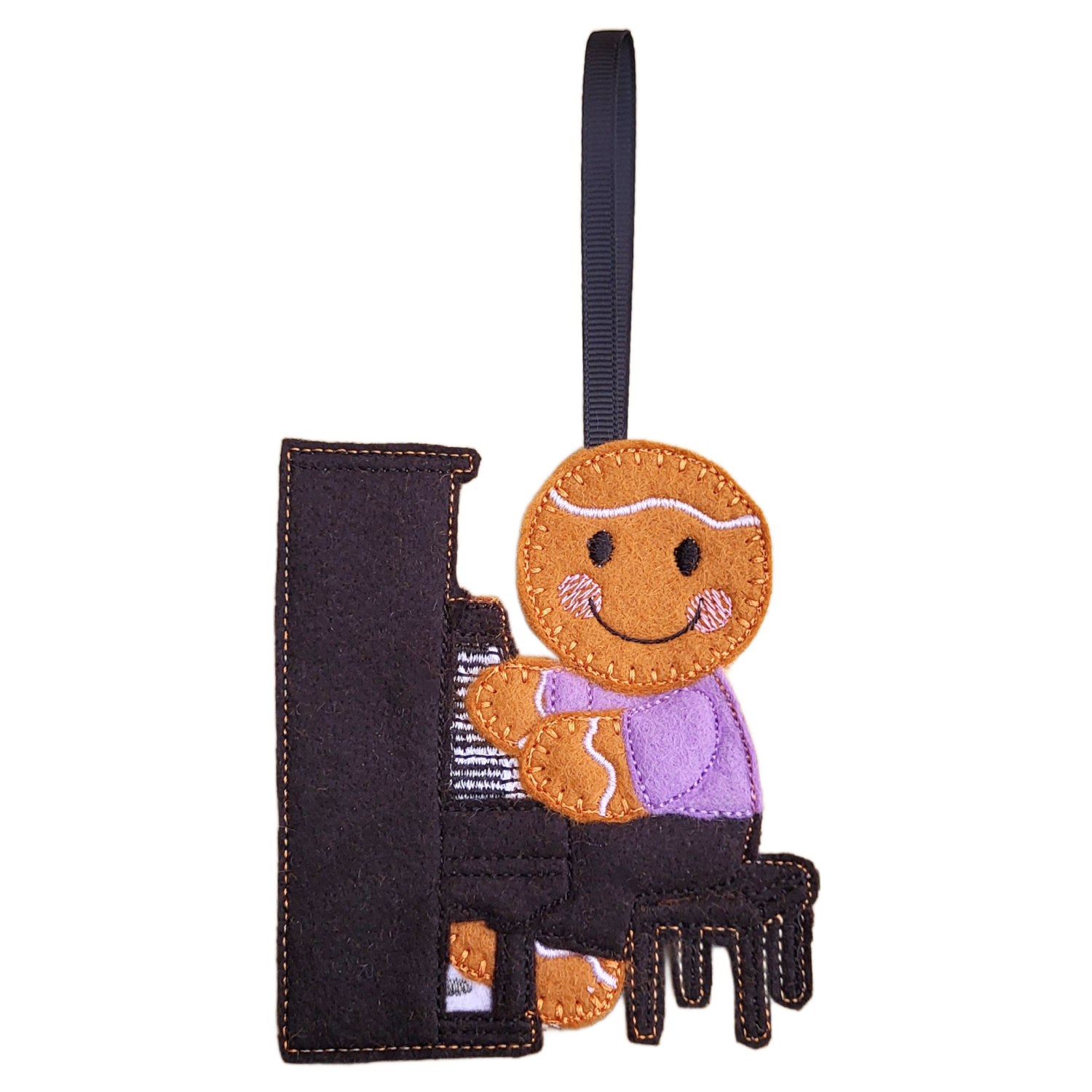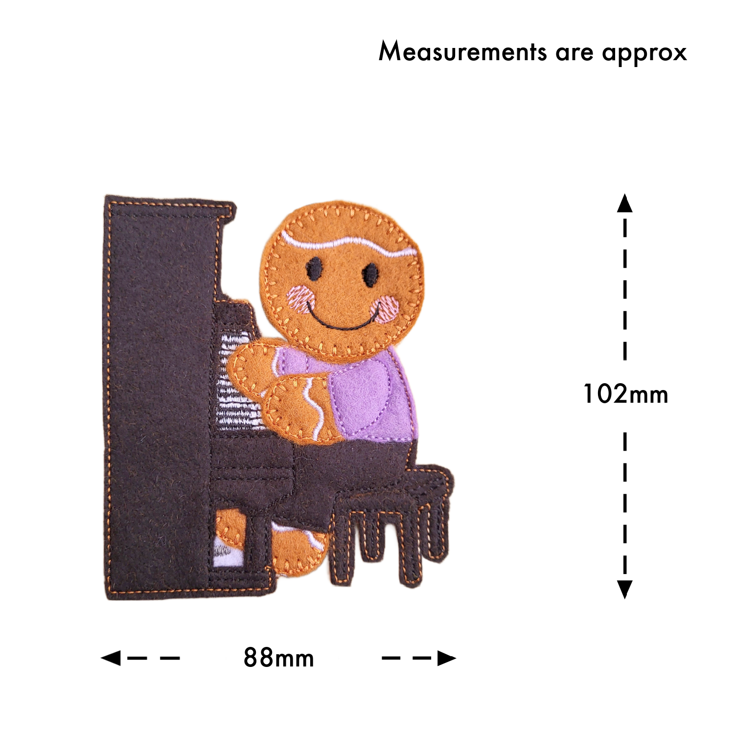 Lovingly made from soft felt and machine embroidered using high-quality threads, this delightful pianist is rich in characterful detail – from the neatly stitched piano keys and cosy piano stool to the rosy blush cheeks and gentle icing details. Measuring approximately 10 cm tall, it is lightweight and designed to be enjoyed year after year. Each gingerbread pianist is carefully stitched to create a keepsake full of heart, personality, and musical joy.
