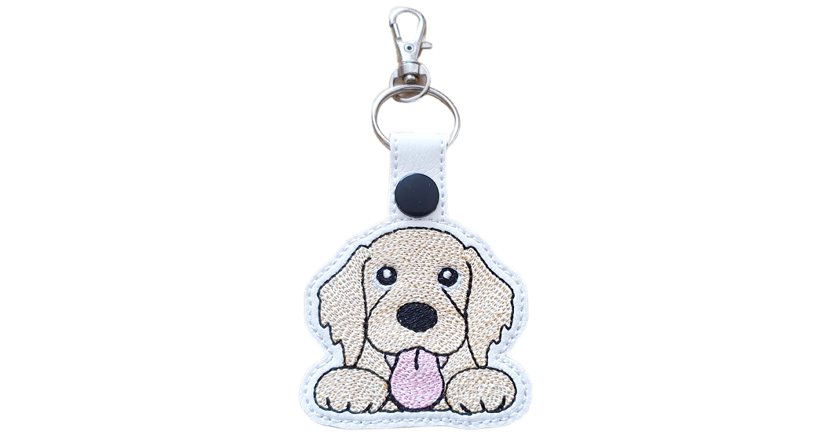 Each keyring is made from soft faux leather and decorated with detailed stitching that captures the unmistakable charm of a Golden Retriever – from the floppy ears and bright eyes to that signature happy expression. The embroidered texture gives the design a cosy handmade feel, full of personality and perfect for adding a touch of cuteness to your everyday essentials.