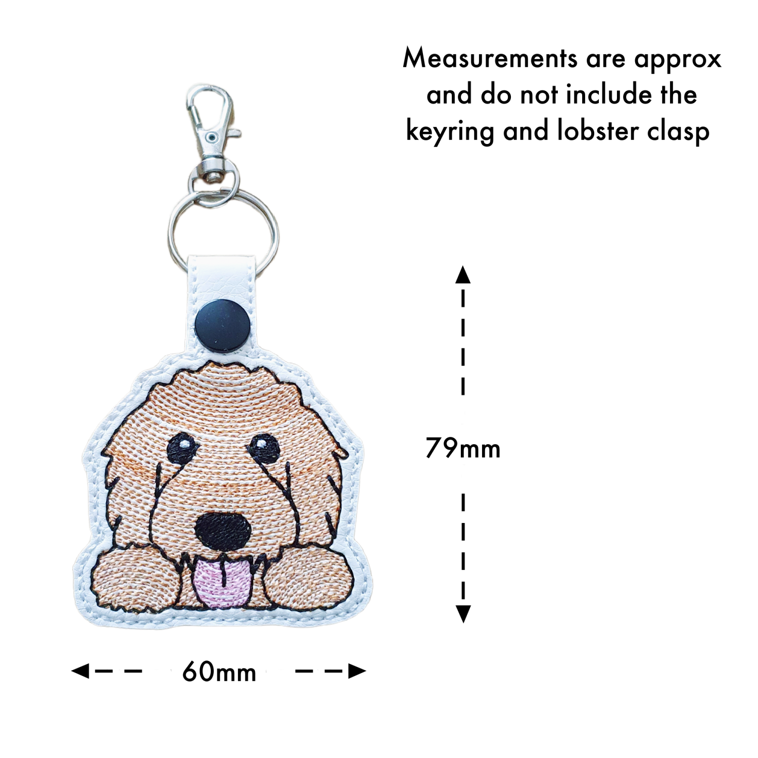 Lovingly made from soft faux leather and finished with beautifully detailed machine embroidery, this Goldendoodle cutie has an endearing look that feels comforting, friendly and full of personality. It is the perfect everyday pick-me-up – whether you are heading out the door, searching for your keys or simply adding a playful flourish to your bag.