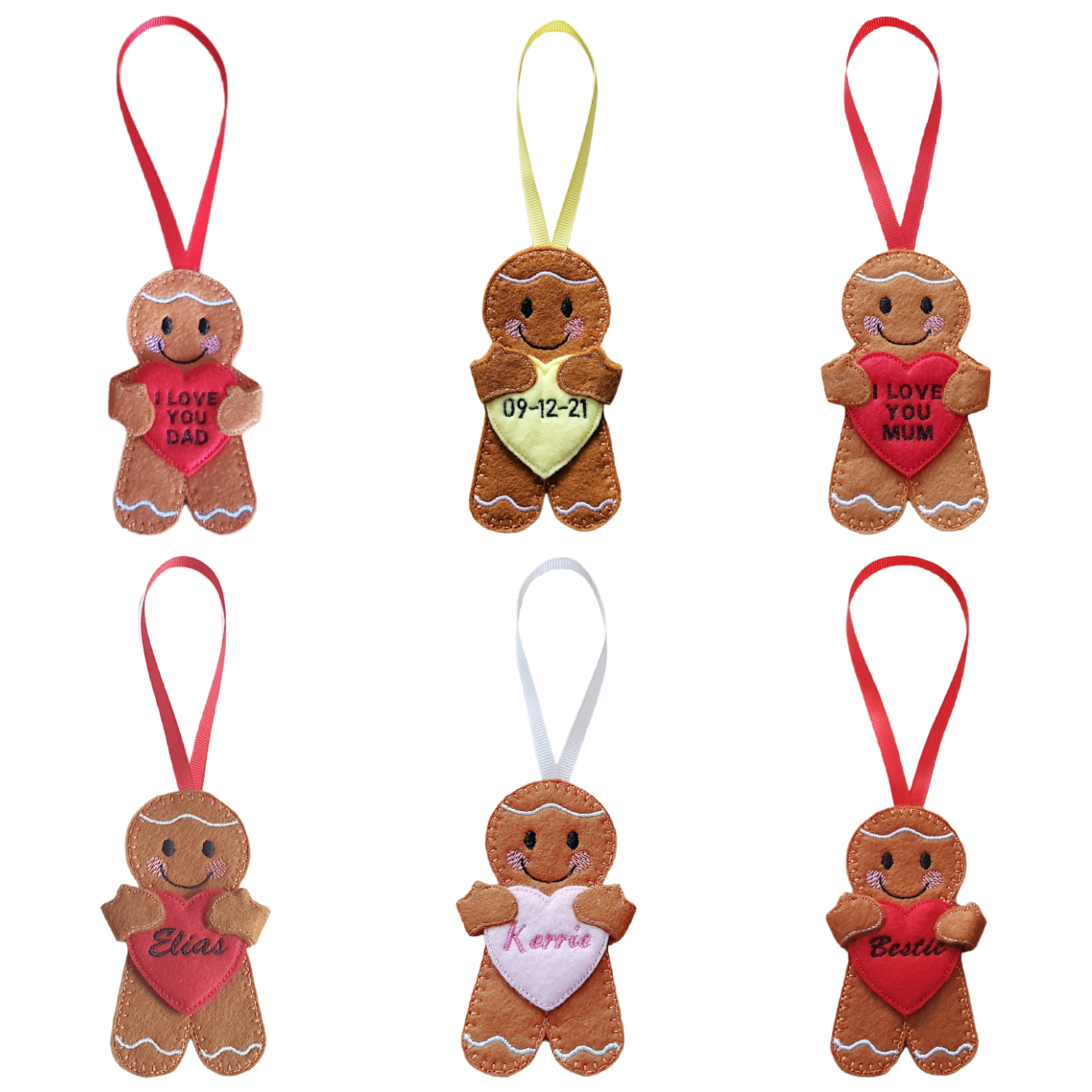 Lovingly made from soft felt and machine embroidered using high-quality threads, this delightful gingerbread is full of characterful detail – from the icing-style edging and carefully stitched heart to the warm, friendly smile. Measuring approximately 10cm tall, it is lightweight and designed to be enjoyed year after year.