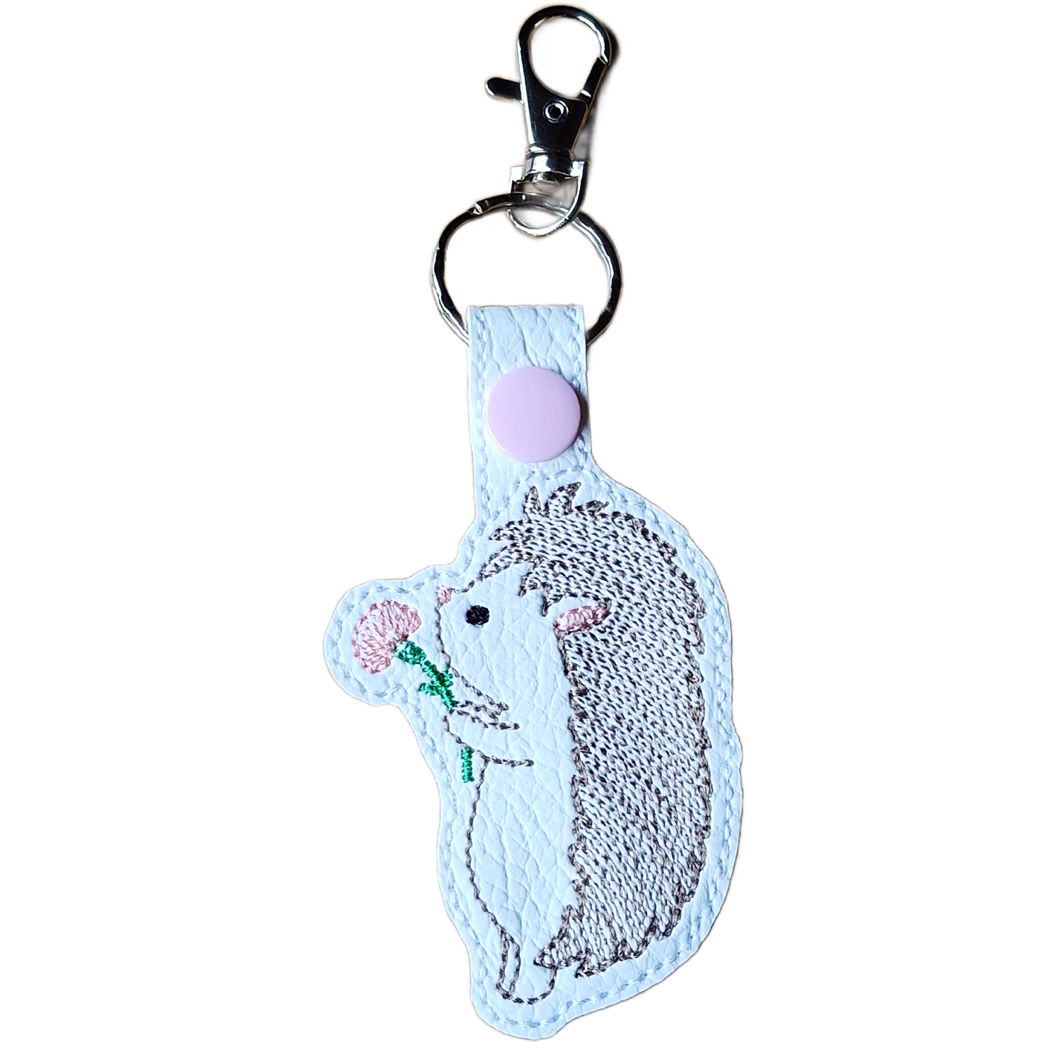 Bring a touch of gentle woodland charm to your daily carry with this Flower Sniffing Hedgehog Keyring. Featuring a soft rounded silhouette, twinkly stitched eyes, and an adorable little pose as it sniffs a dainty blossom, this little hedgehog adds a cosy, heart-warming touch to keys, handbags, backpacks, or lanyards.