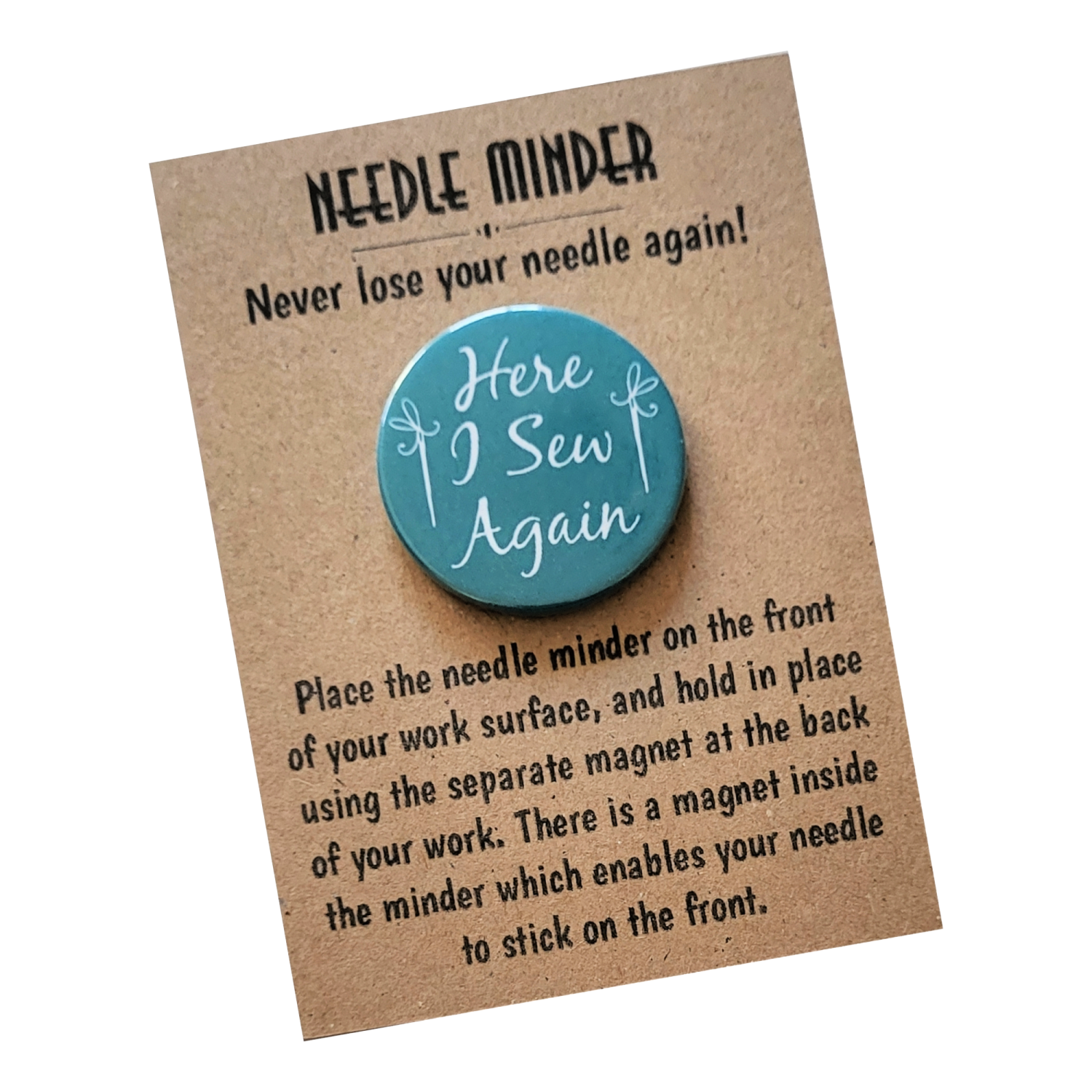 Every stitcher knows that familiar feeling – you sit down ‘just for a moment’, pick up your project, and before you know it… here you sew again. This Here I Sew Again Needle Minder keeps your needle safe, visible, and exactly where you left it, so you can stitch happily without searching through fabric folds, sofa cushions, or the floor.