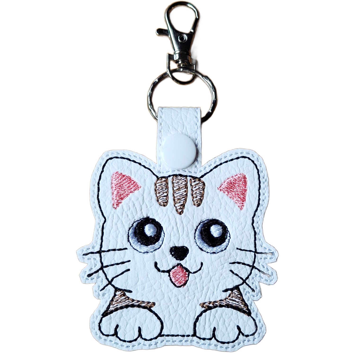 Made from soft faux leather and carefully machine embroidered, each keyring captures the lovable charm of a friendly kitty. From the tiny paws to the cute whiskers, every detail is stitched with care, giving it a handmade feel while keeping its kawaii personality front and centre.