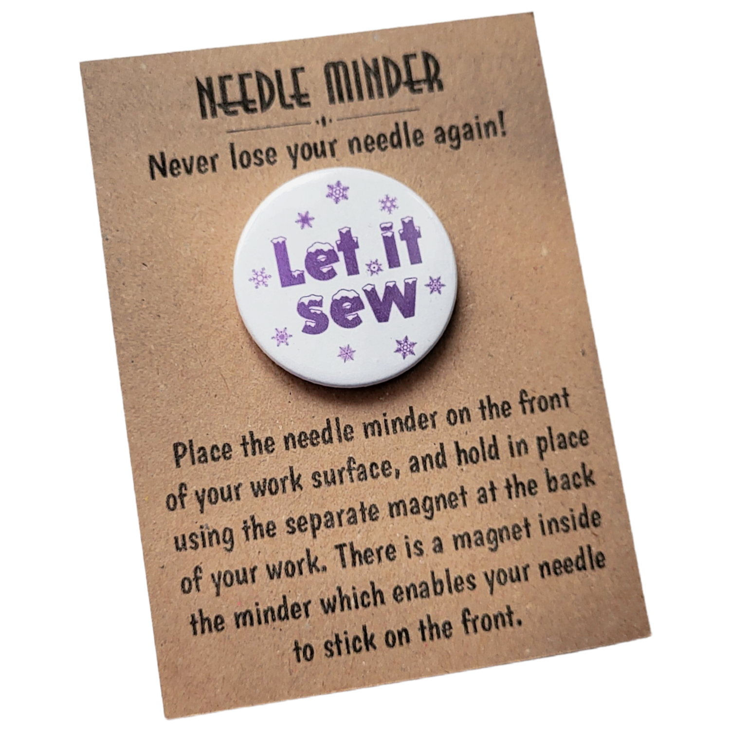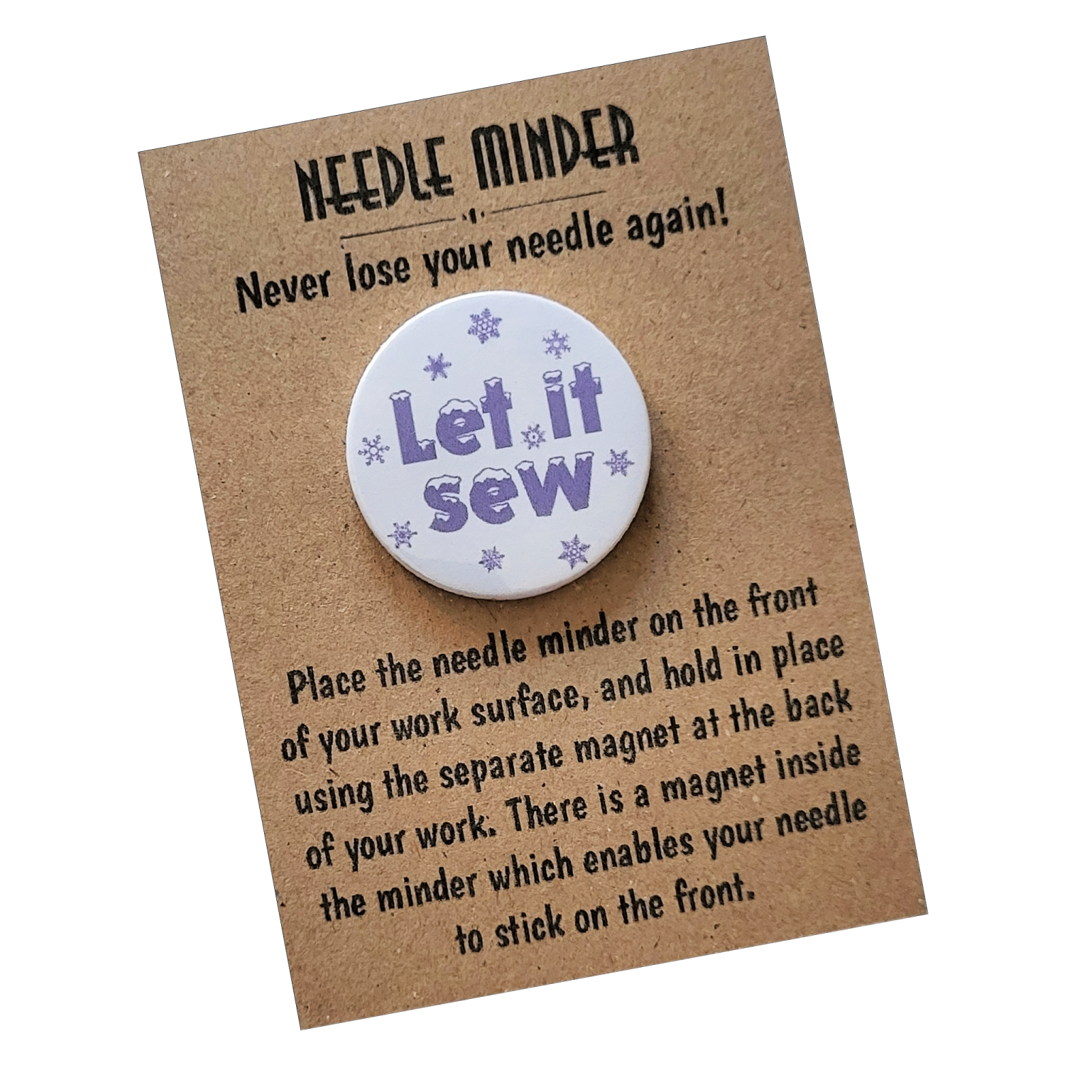 Presented on a kraft backing card and packaged in a protective sleeve, the Let It Sew Snowflake Needle Minder makes a thoughtful gift for stitchers of all levels. Ideal for birthdays, winter stitching treats, craft friends, or as a small seasonal pick-me-up for yourself, it is a practical keepsake designed to be enjoyed again and again.