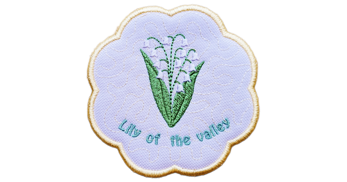 Inspired by lily of the valley, the birth flower for May, this design symbolises happiness, humility and a return to gentle pleasures. Fine embroidered details capture the graceful bell-shaped blooms, while the softly scalloped edge frames the design with a calm decorative finish. Ideal for coffee tables, side tables or shelves, it brings a peaceful presence that feels uplifting without overwhelming your space.