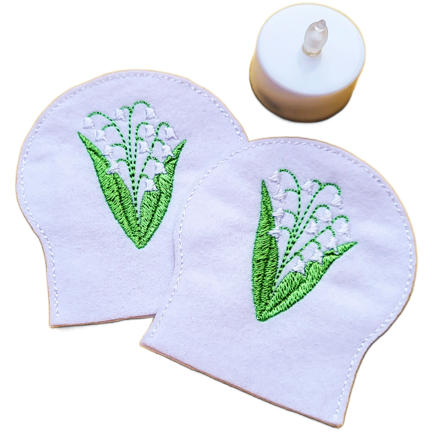 Transform your home into a haven of soft, glowing charm with the exquisite set of two Lily of the Valley Flower Tealight Covers. Beautifully embroidered with the delicate and enchanting design of the Lily of the Valley, these covers elevate ordinary tealights into stunning decorative accents that breathe life into any space.