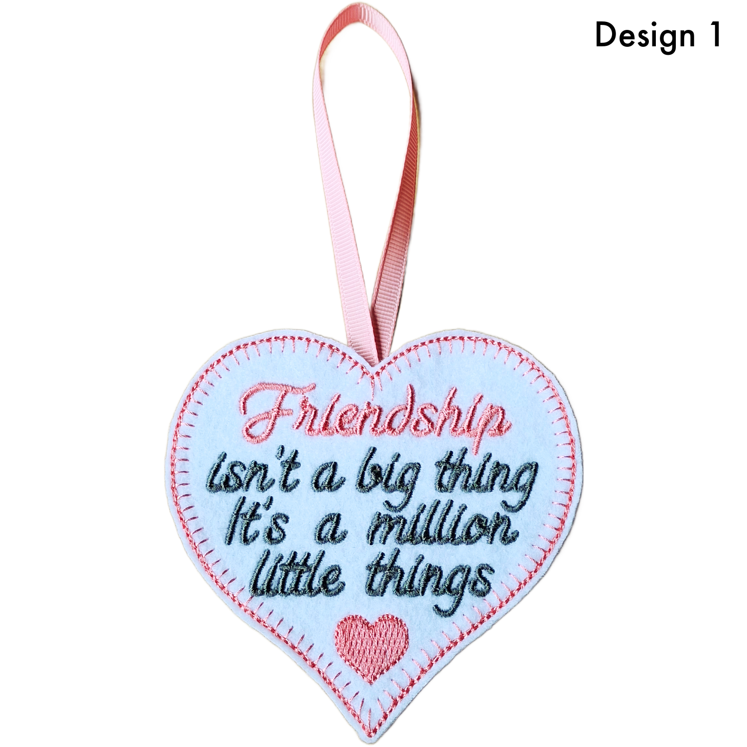 Made from soft felt and embroidered using premium threads, each heart has a wonderfully smooth, high-quality finish. The tiny stitched heart adds a thoughtful pop of colour, and the coordinating ribbon loop completes the design with a sweet finishing touch.