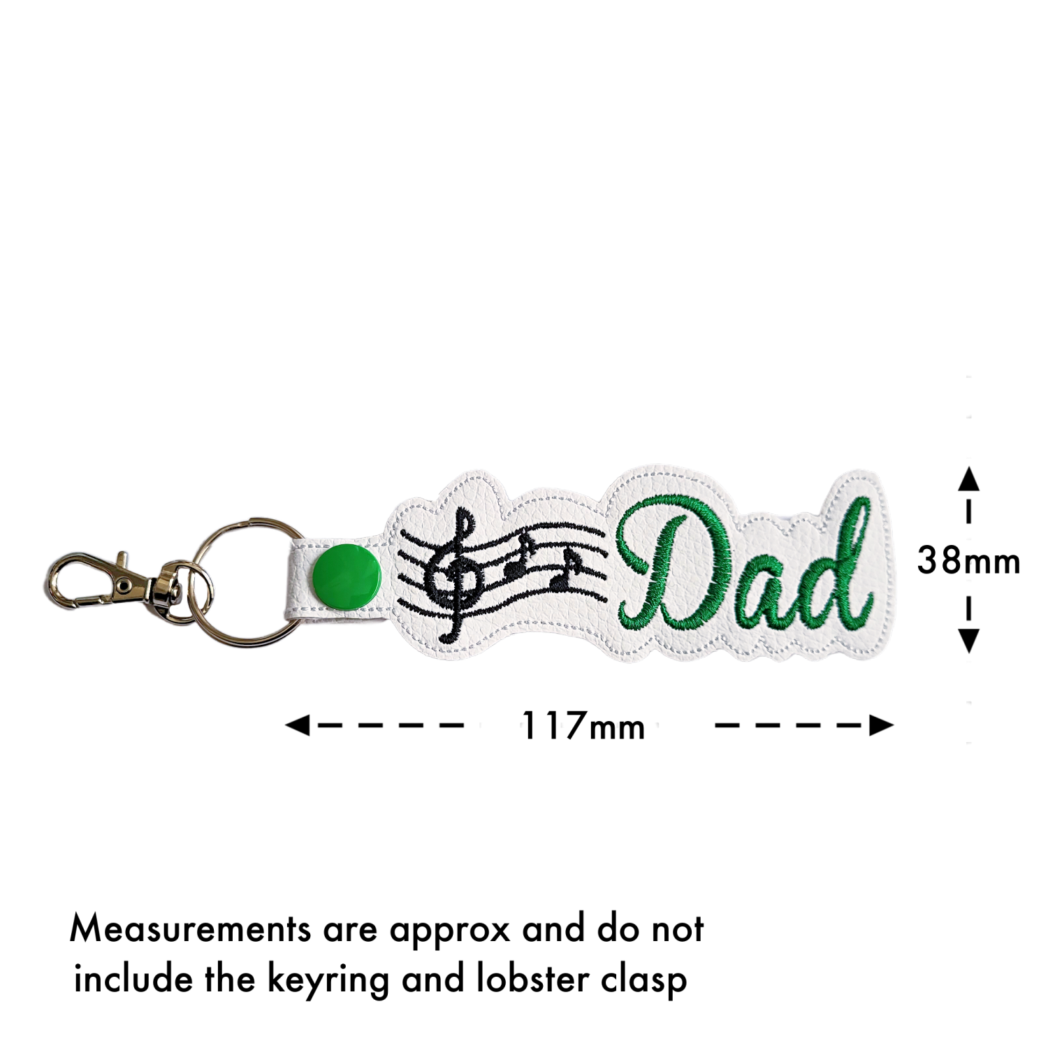 🎵 Simple & Musical Design Featuring embroidered musical notes alongside the word ‘Dad’, this design is clean, timeless, and full of sentiment. A subtle nod to a love of music, it allows the message to speak softly but clearly, making it suitable for everyday use.