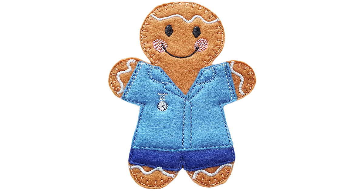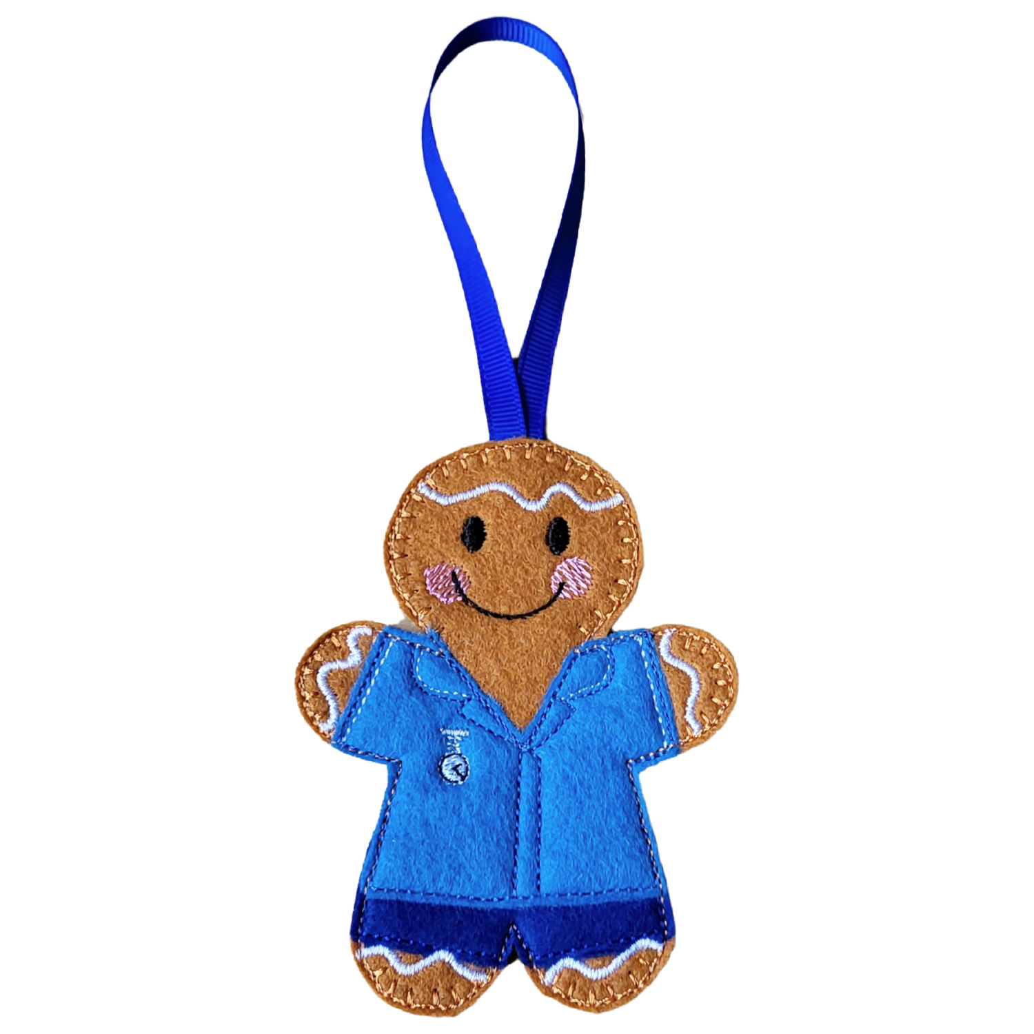 Each gingerbread is carefully handmade from soft felt and beautifully embroidered with fine detailing for a truly unique finish. From the warm smile to the tiny, stitched accents, every piece is made with care and appreciation for those who dedicate their time to helping others.