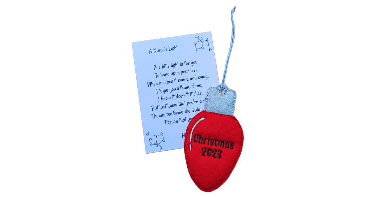 Each Nurse Christmas Light is shaped like a classic Christmas light bulb, lovingly crafted from high-quality, durable felt and machine embroidered with premium threads. It’s a heartfelt decoration to hang on the tree or display at home – a lasting reminder of care, compassion, and gratitude.