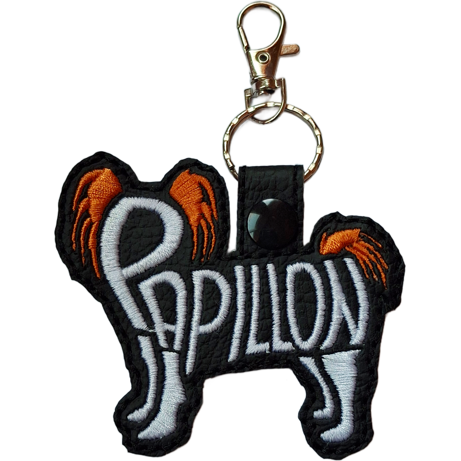 🐾 Crafted with Care for Papillon Fans Each keyring is made from soft faux leather and finished with detailed machine embroidery. The stitched word-art curves neatly within the Papillon silhouette, adding texture, movement and gentle personality without feeling fussy. Every piece is thoughtfully created to reflect the beauty, delicacy and playful spark of this much-loved breed.