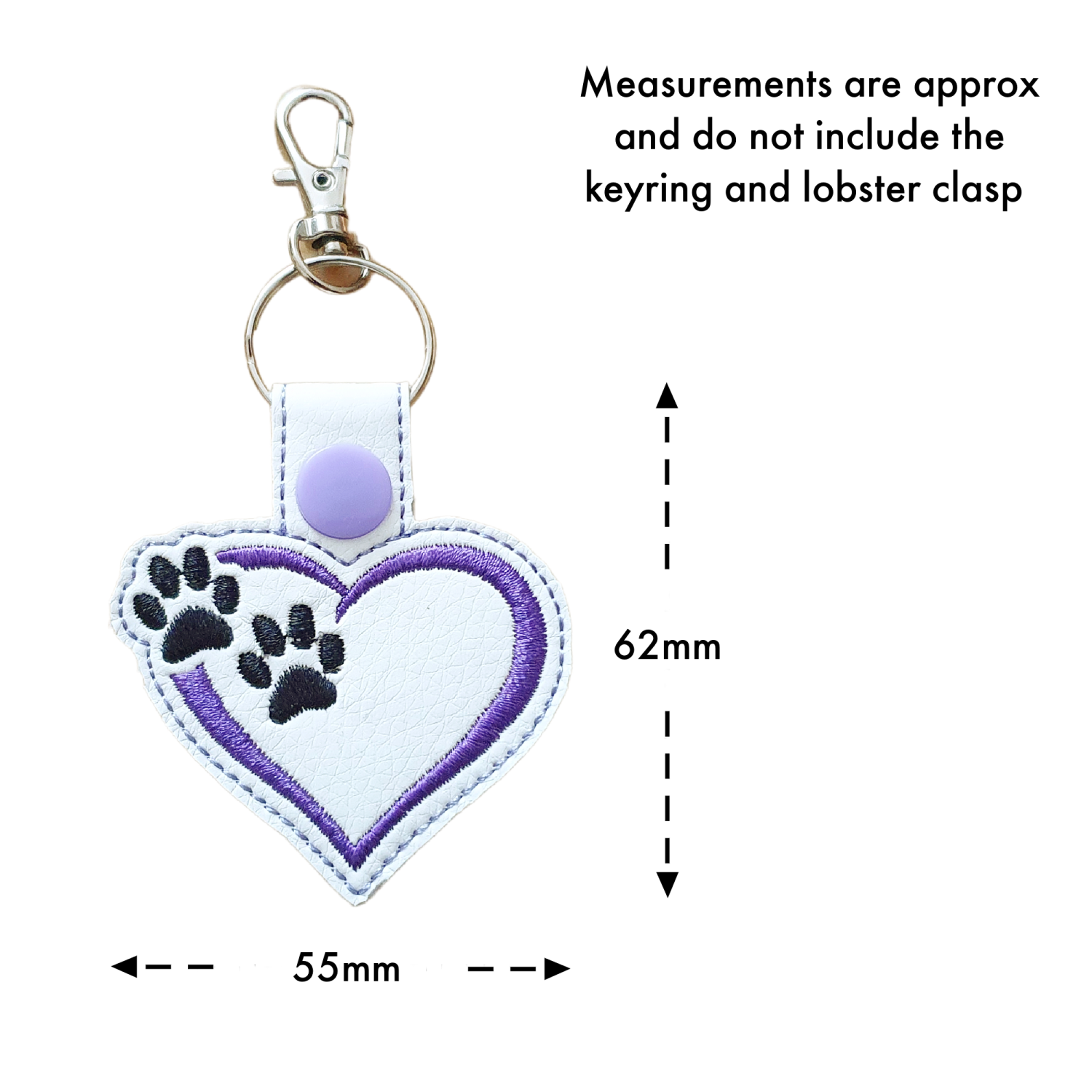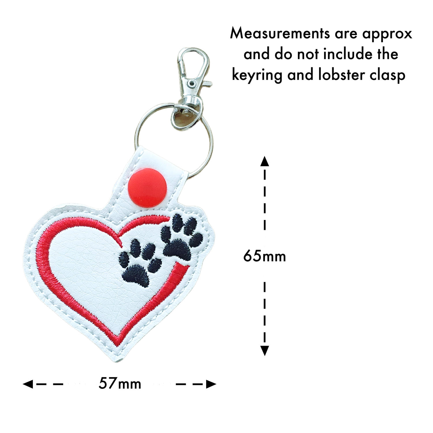 Each keyring is crafted from soft, durable white faux leather, chosen for its smooth feel and long-lasting quality. The heart and paw motif is neatly machine embroidered using premium thread, giving every line crisp definition and a soft, beautiful finish. Thoughtfully stitched and carefully shaped, it is designed to be practical enough for daily use while still feeling special and heartfelt.