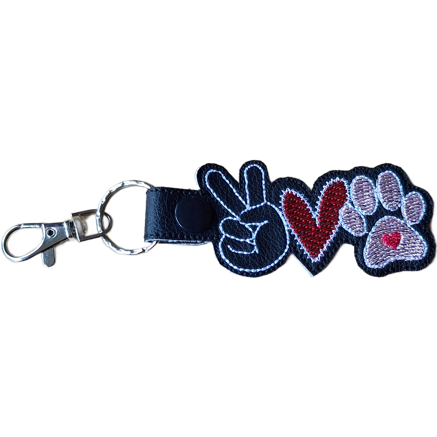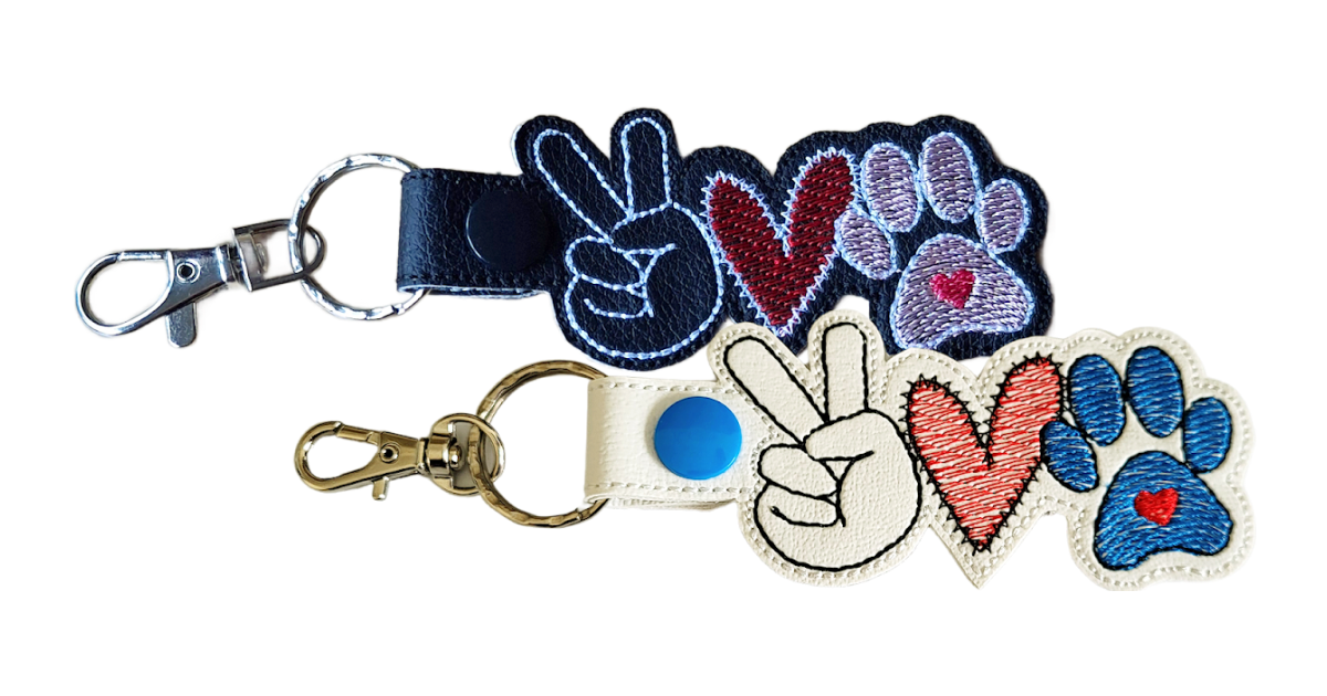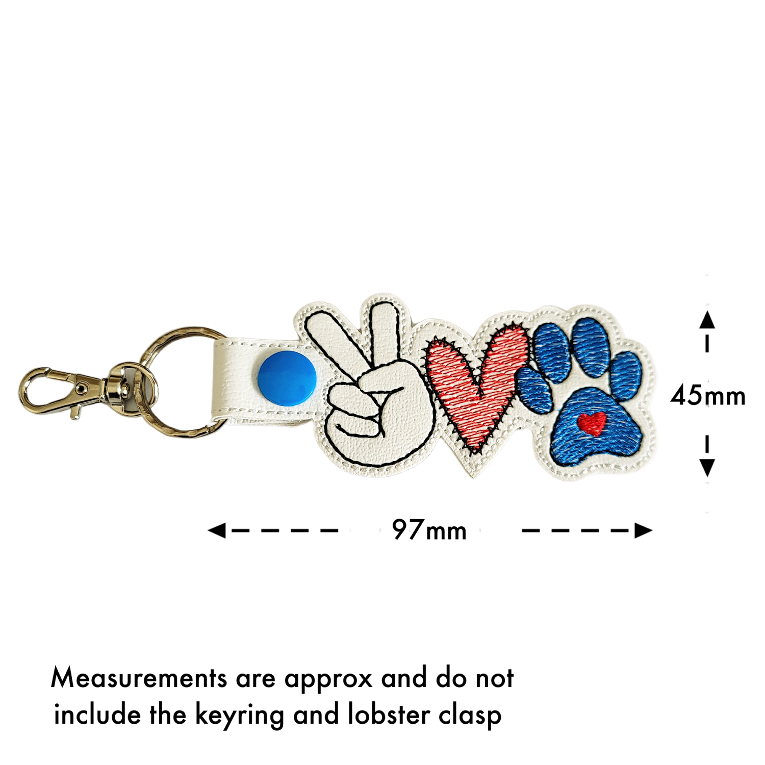 Made from high quality faux leather and carefully machine embroidered with premium threads, each keyring is created with character and attention. From the playful peace hand to the stitched heart and textured pawprint, every detail adds durability, charm, and that handmade feel you love.