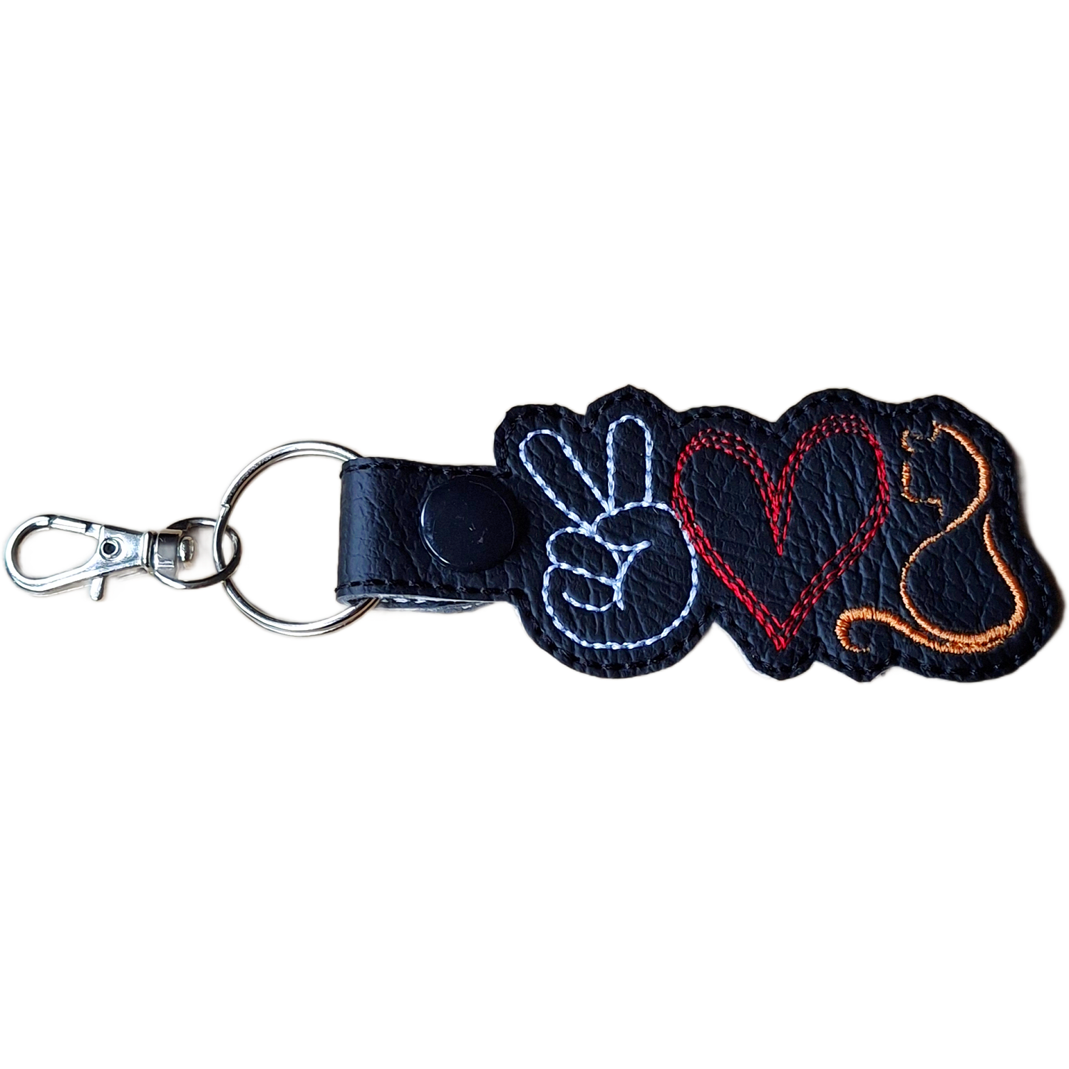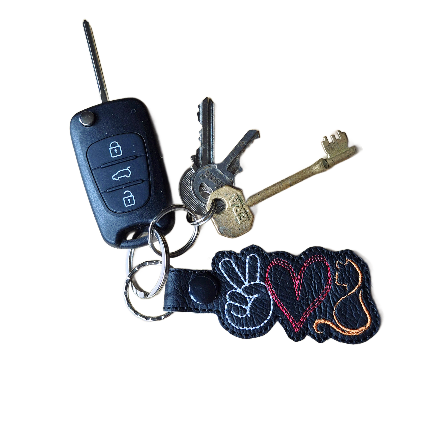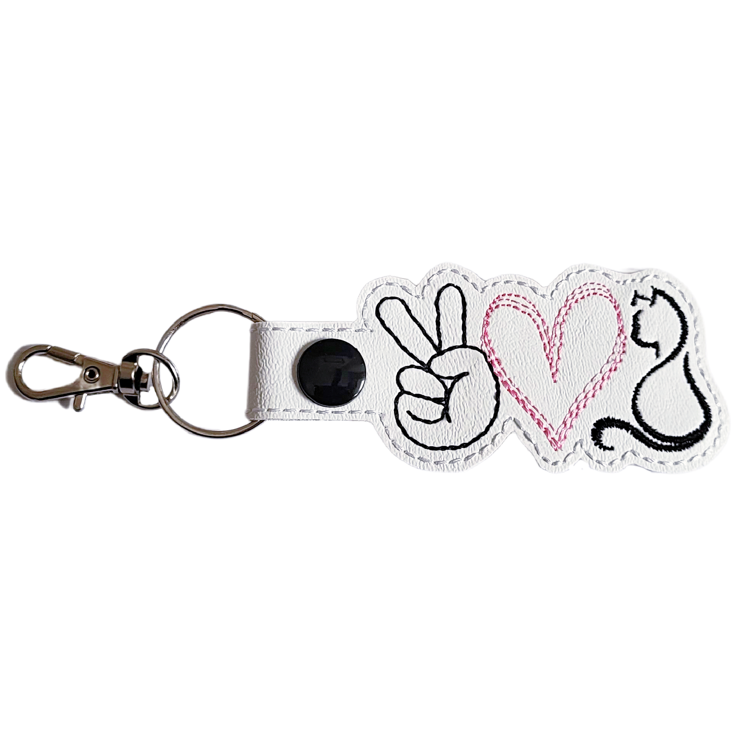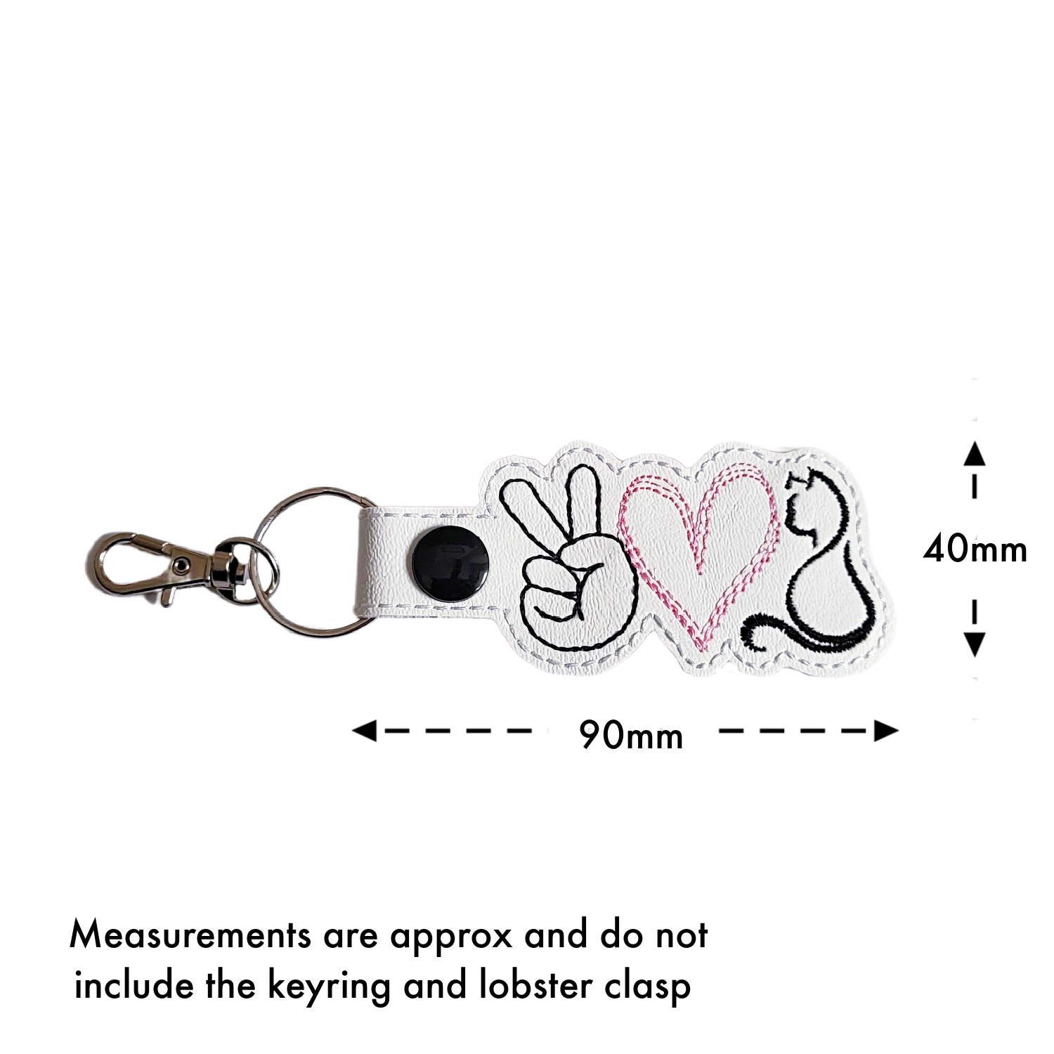 Celebrate the quiet comfort and playful charm of feline companionship with this Peace Love Cat Keyring – a sweet keepsake for anyone who knows that life is better with a cat close by. Featuring the familiar symbols of peace and love alongside a graceful cat silhouette, this design captures affection, independence and that unmistakable cat-loving joy.