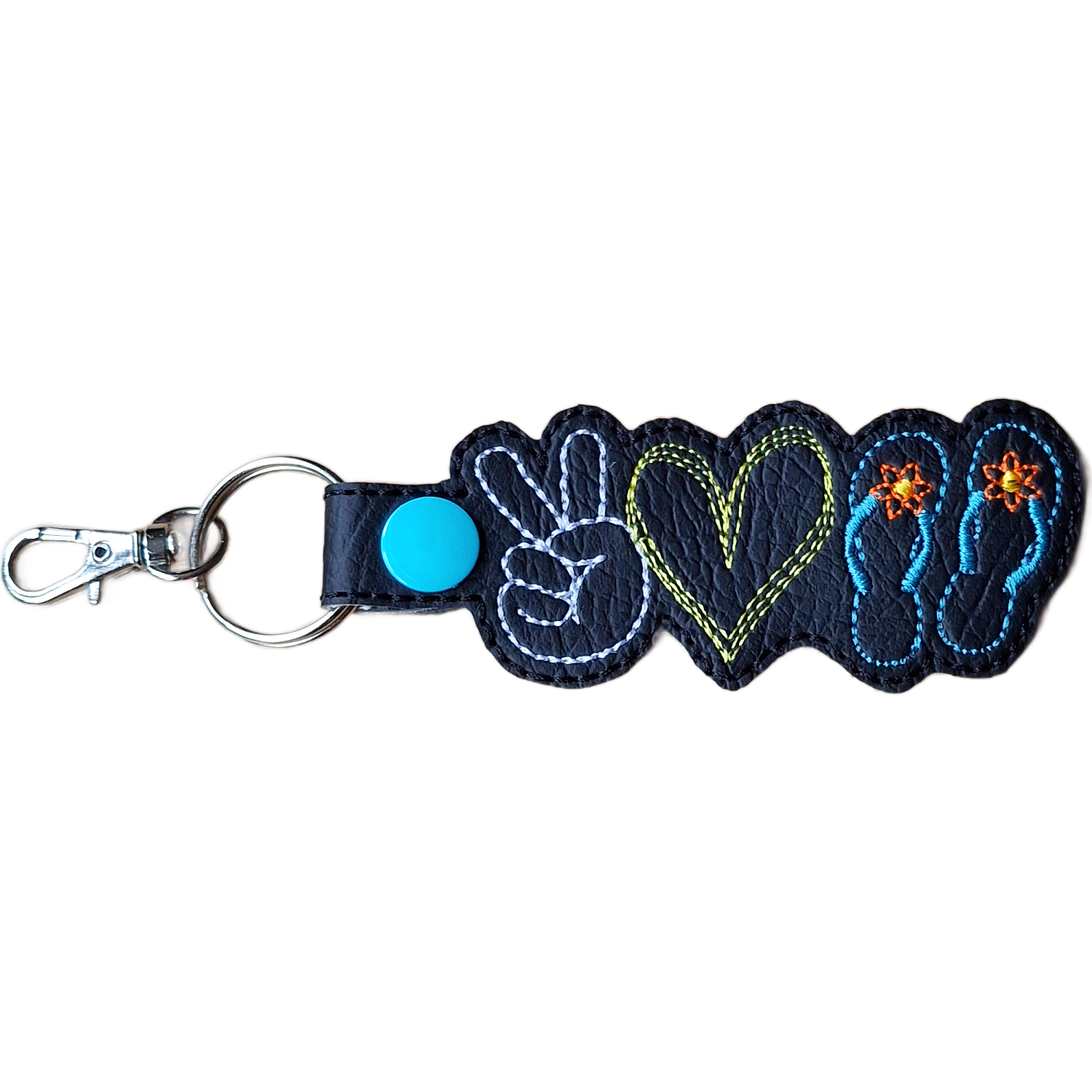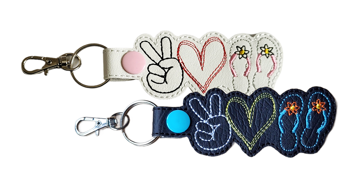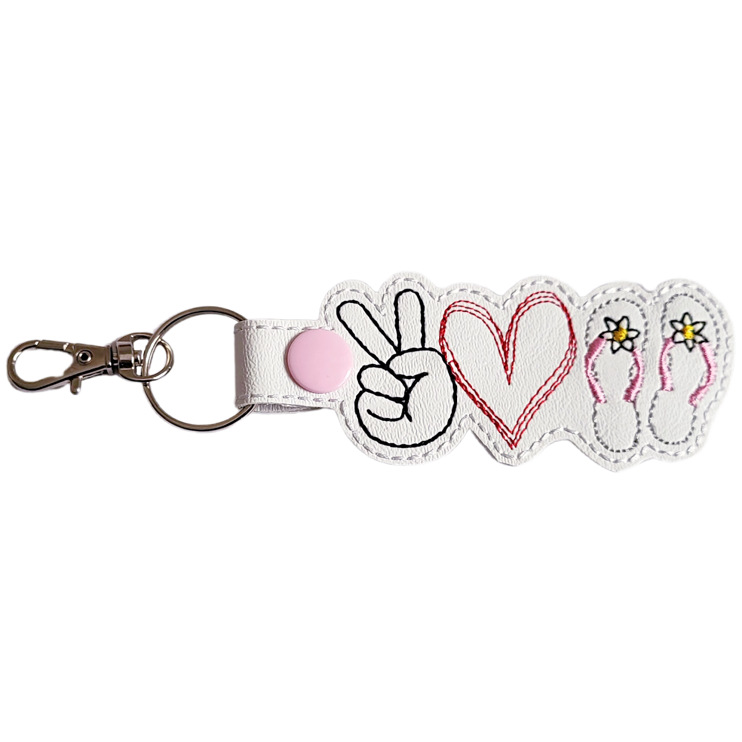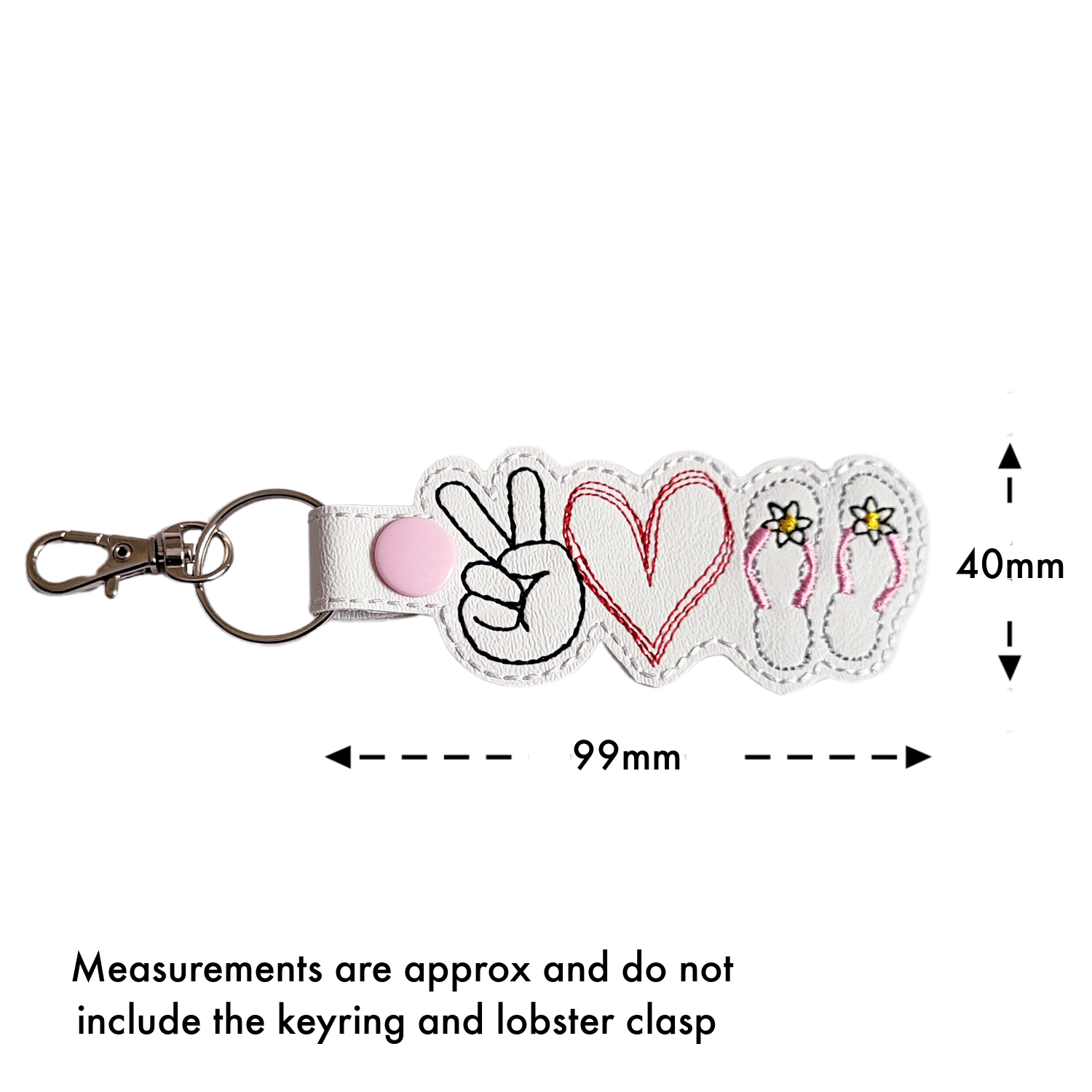 Made from high quality faux leather and beautifully machine embroidered with premium threads, each keyring is designed to capture the playful spirit of summer. From the expressive peace sign to the sweet details on the flip flops, every stitch adds charm, character, and a smile.