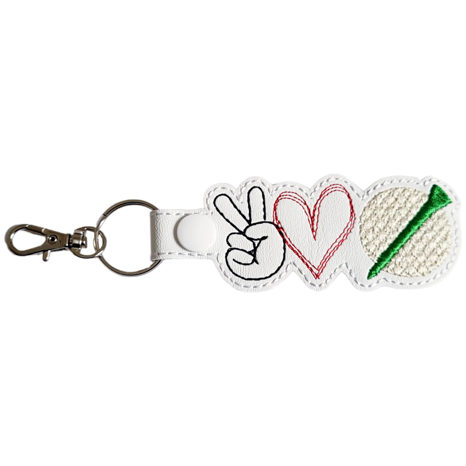 Add a cheerful touch of golfing energy to your everyday essentials with the Peace, Love & Golf Keyring. Featuring a stitched peace sign, a sweet heart, and a beautifully detailed golf ball with tee, this playful accessory celebrates calm moments on the course, shared laughs, and the simple joy of a perfect swing.