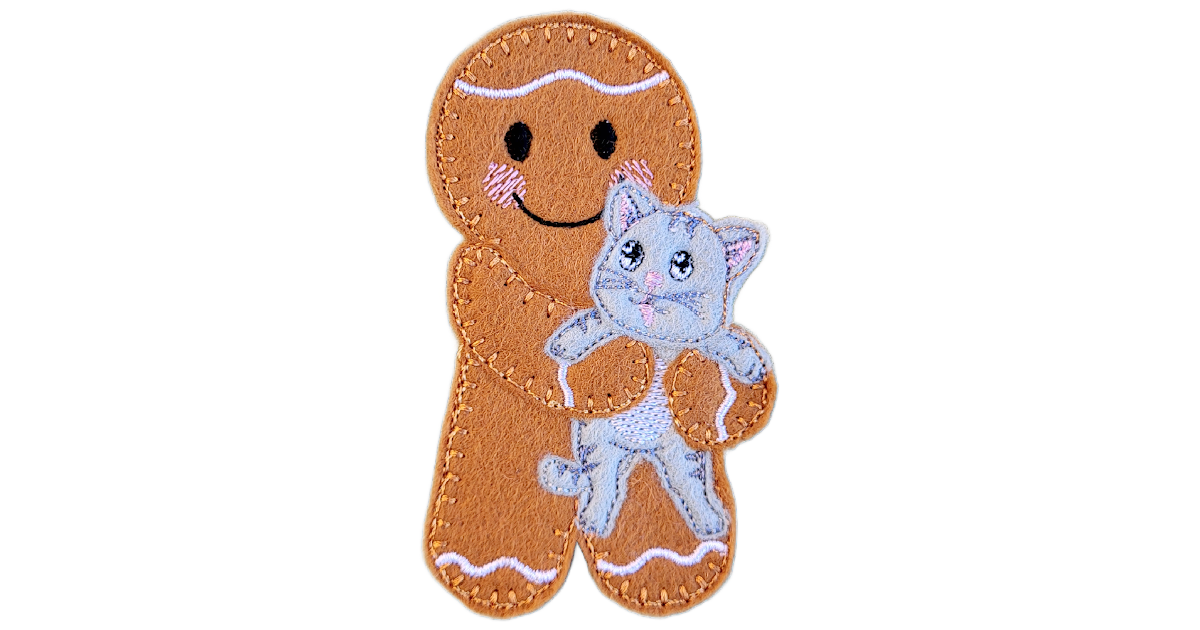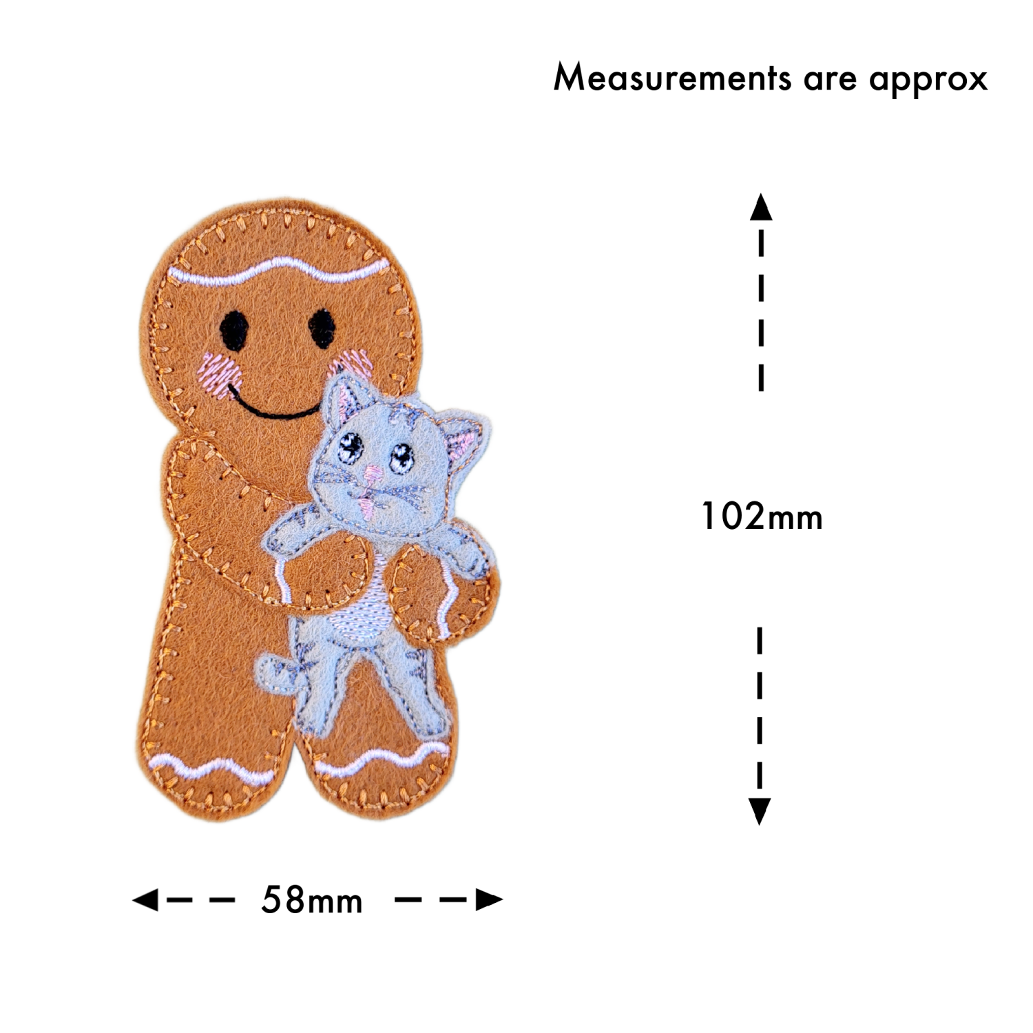 Each gingerbread is carefully handmade from soft felt and finished with detailed embroidery for a truly special touch. From the warm smile and rosy cheeks to the stitched cat nestled in their arms, every element is created with care and attention to detail.