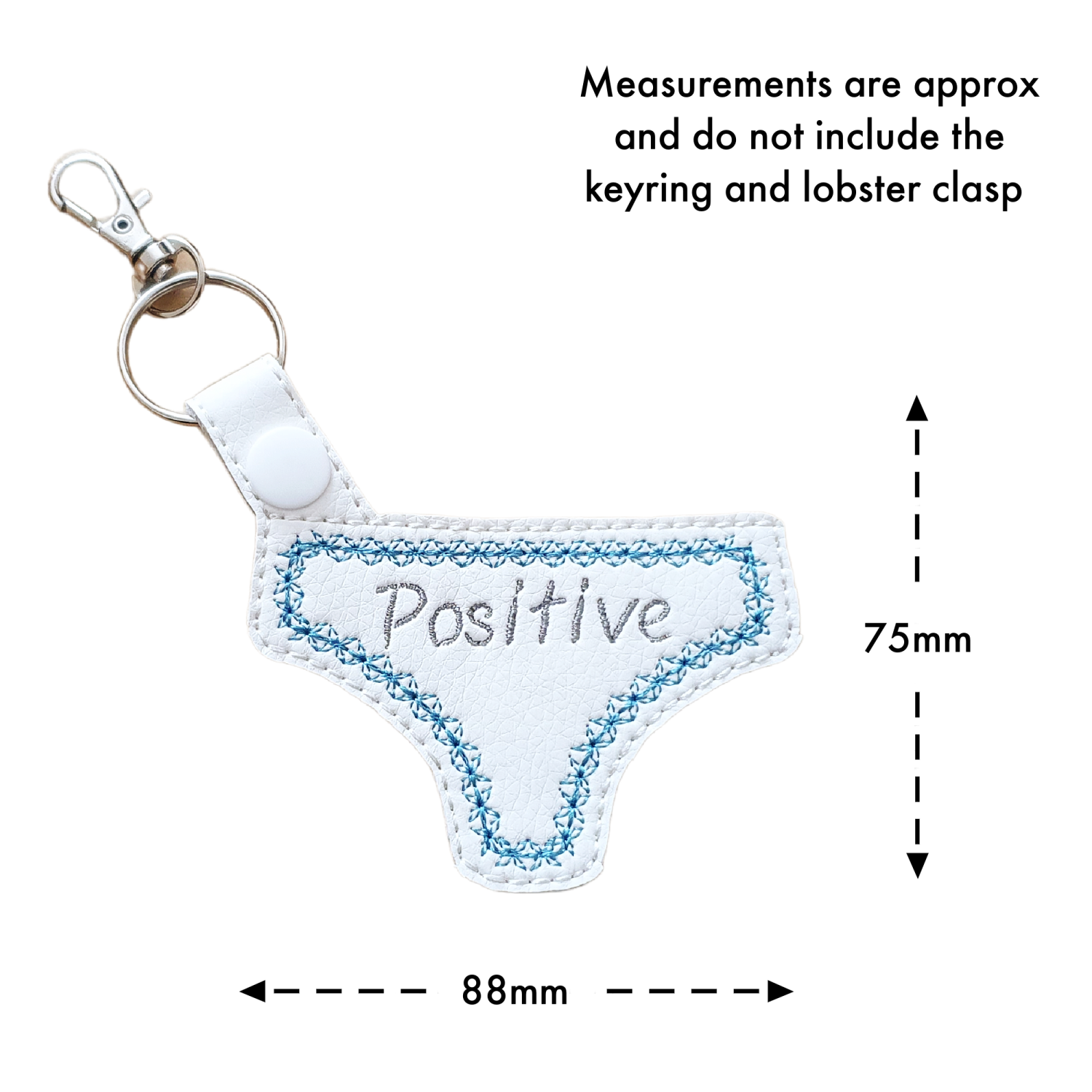 🎨 Colour Options This Positive Pants keyring is available in either black or white. Simply choose your favourite colour from the drop down menu when ordering.