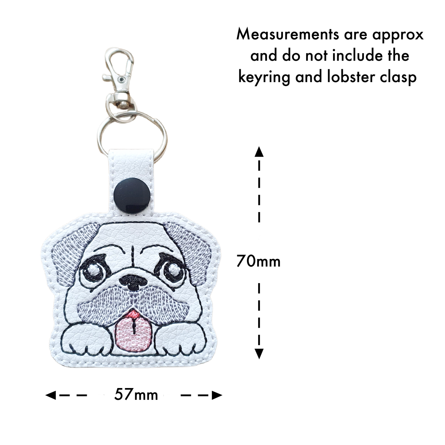 Lovingly made from faux leather and machine embroidered using high quality threads, this keyring is lightweight, soft to the touch, and beautifully detailed. Finished with a sturdy metal keyring and lobster clasp, it is easy to attach to keys, bags, backpacks, or zips, making it as practical as it is cheerful.