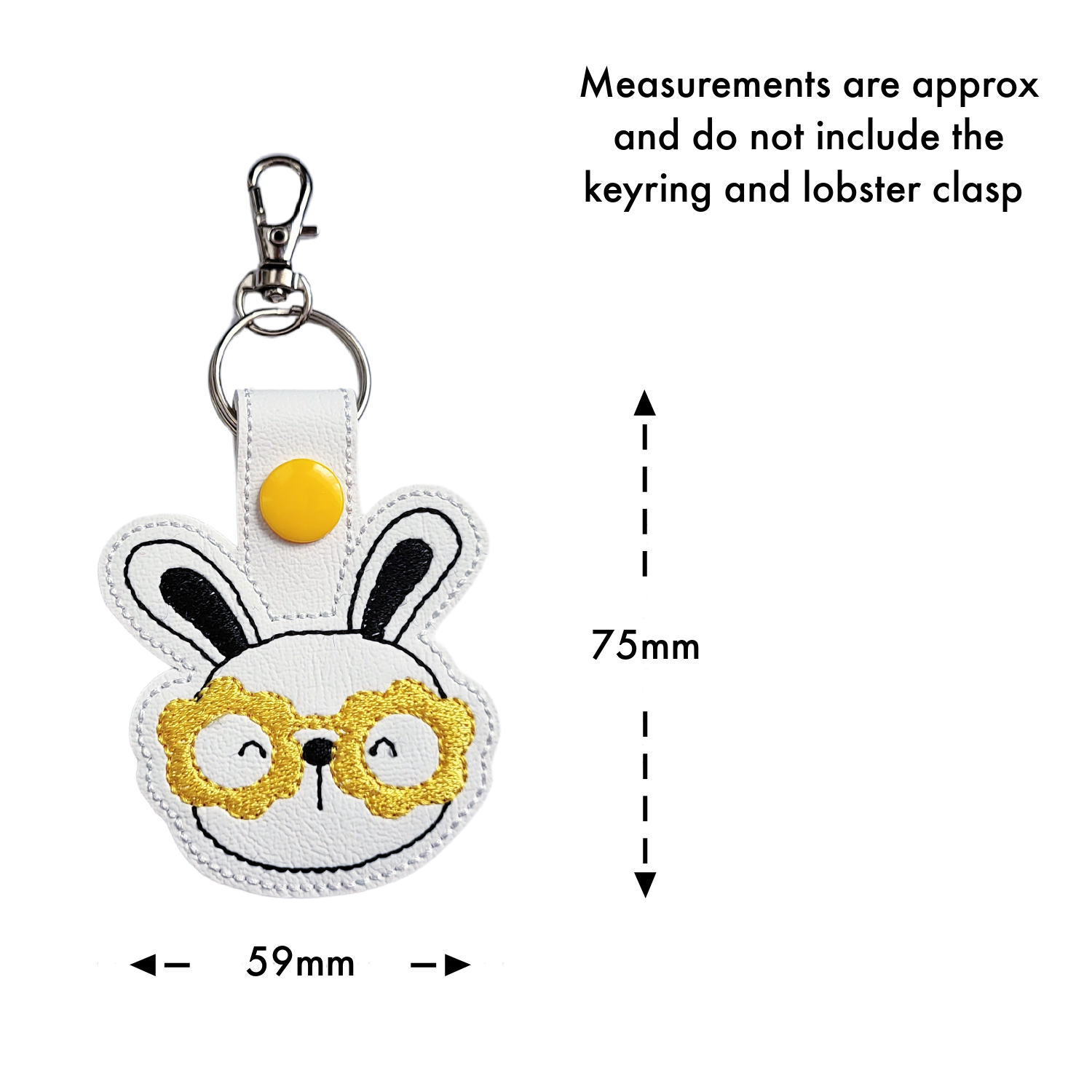 Bring a bright splash of joy to your day with this adorable Sunny Bunny with Glasses Keyring. Softly stitched and full of playful personality, this cheerful little friend adds a happy burst of character to keys, bags, and backpacks. With its smooth embroidered lines, gentle smile, and fun yellow flower-shaped glasses, it is a delightful companion for everyday adventures and a sweet addition to thoughtful gifts and festive stockings.