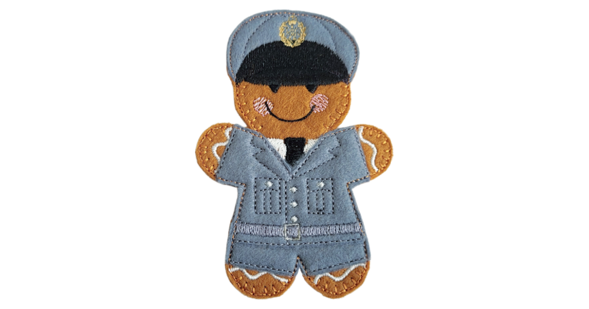Each gingerbread is carefully handmade from soft felt and beautifully finished with high-quality embroidery threads. From the tailored uniform and peaked cap to the smiling gingerbread face, every detail is stitched with care, precision, and pride – a small work of art inspired by Royal Air Force tradition.