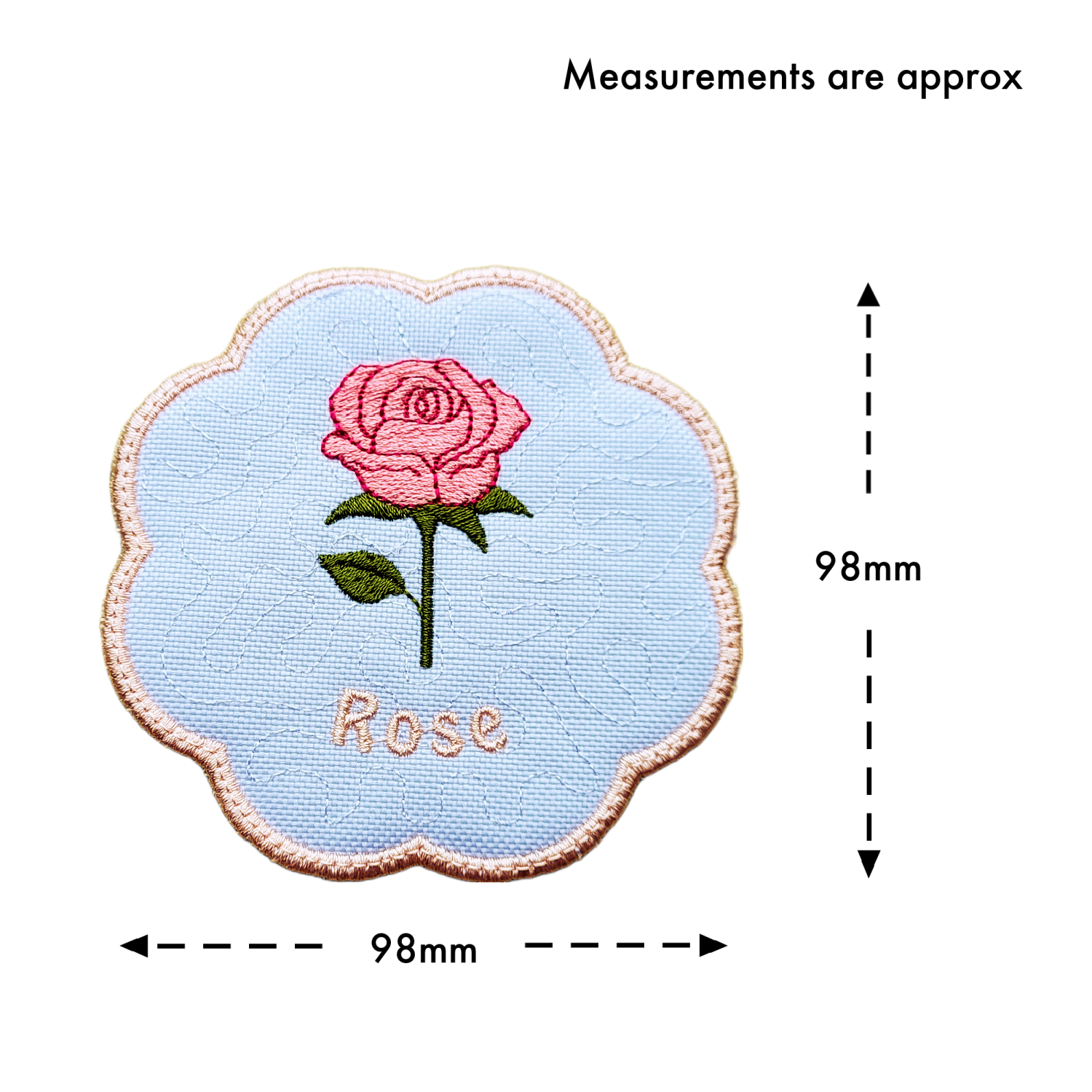 If you would like different colours for the border, stippled pattern or rose, please let me know your preferences in the box at checkout, specifying which part of the design each colour is for.