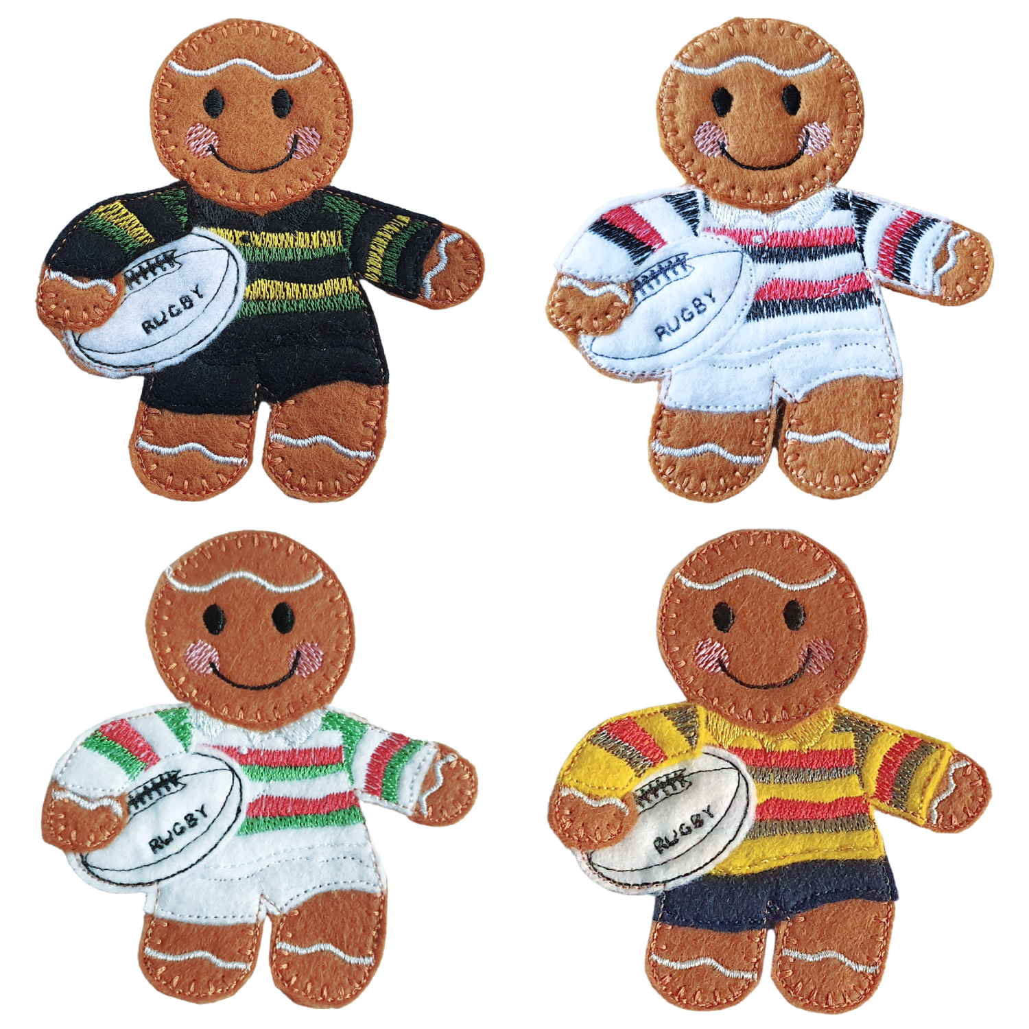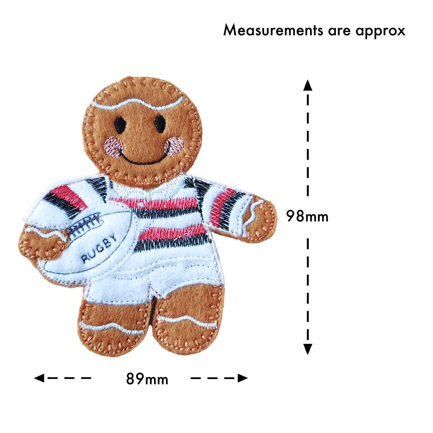 Lovingly made from soft felt and machine embroidered using high-quality threads, this delightful rugby player is full of characterful detail – from the friendly icing-style features to the carefully stitched ball and kit design. It is lightweight and designed to be enjoyed year after year.