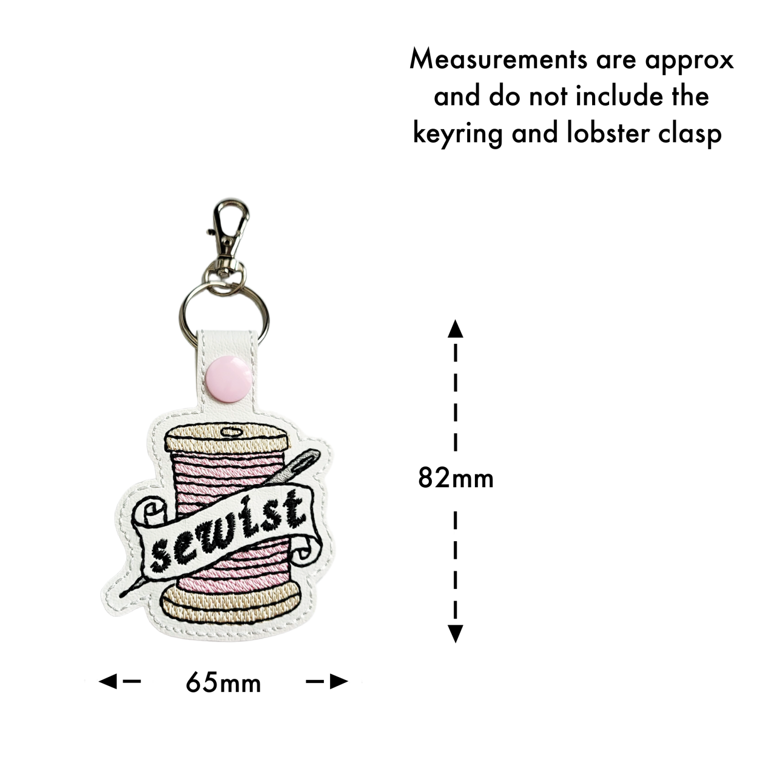 Lovingly made from faux leather and machine embroidered using high quality threads, this sewist keyring is carefully stitched for a crisp, detailed finish. Soft yet durable, it is lightweight, comfortable to carry, and designed to stand up to everyday use.