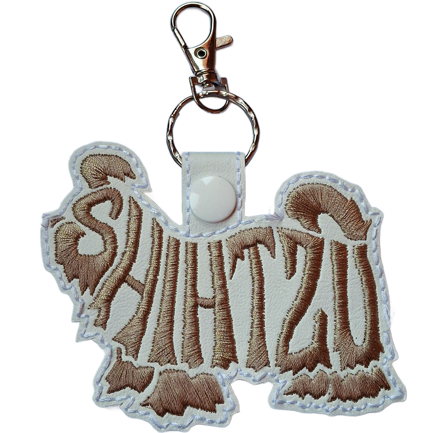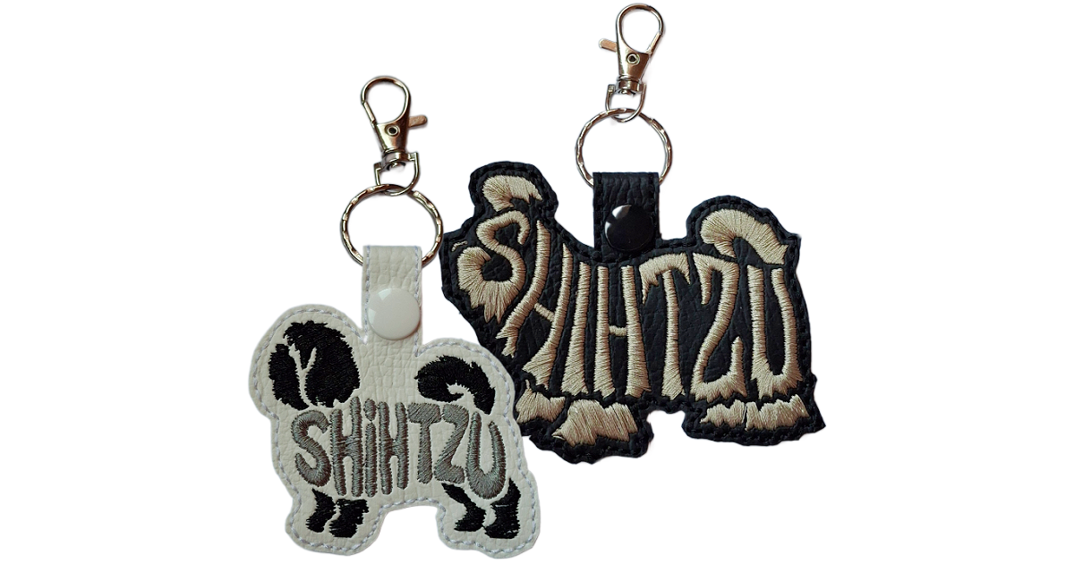 The design features the word ‘Shih Tzu’ stitched to form the shape of the dog itself, with each letter carefully placed to reflect the breed’s compact build, flowing coat and proud stance. The flowing word-art silhouette creates a soft yet balanced design that highlights the Shih Tzu’s quiet confidence, loyal nature and deep bond with its people.
