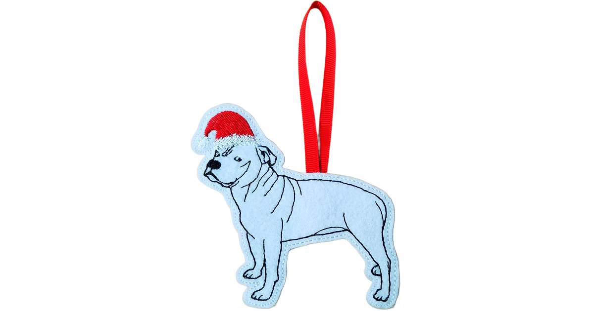 Add a touch of festive cheer – and a wag of the tail – to your Christmas tree with the charming Santa’s Staffordshire Terrier Christmas Ornament! This beautifully embroidered decoration captures the loyal, affectionate nature of the beloved Staffordshire Terrier, all dressed up for the season in a bright red Santa hat.